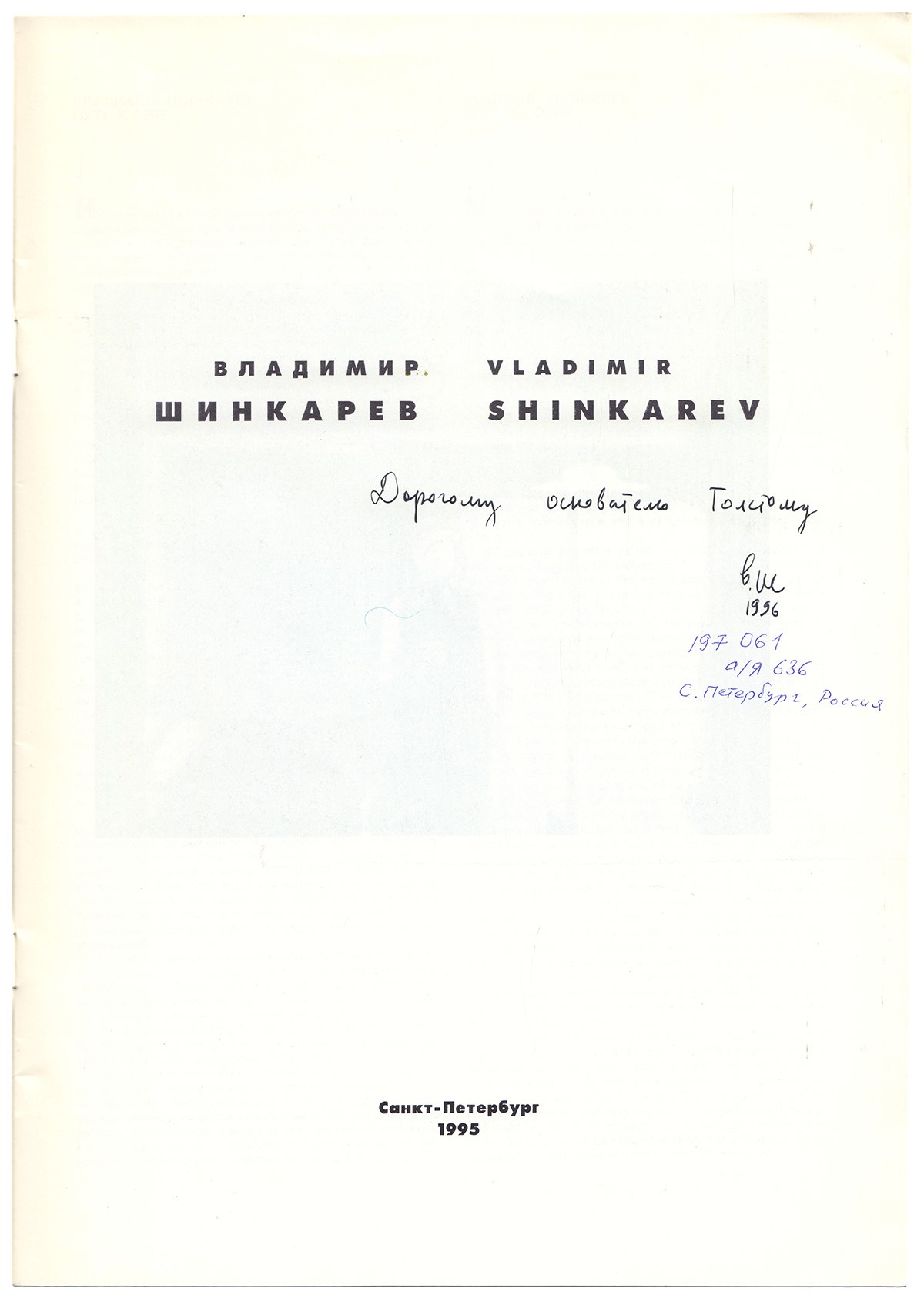 На тит. л. дарственная надпись художника, адресованная В.С. Котлярову: "Дорогому основателю Толстому / ВШ / 1996".