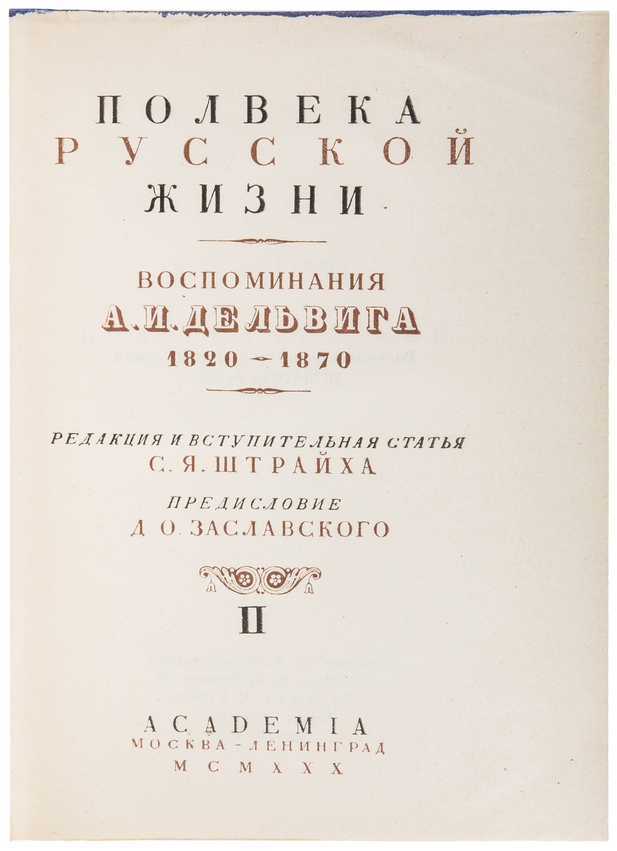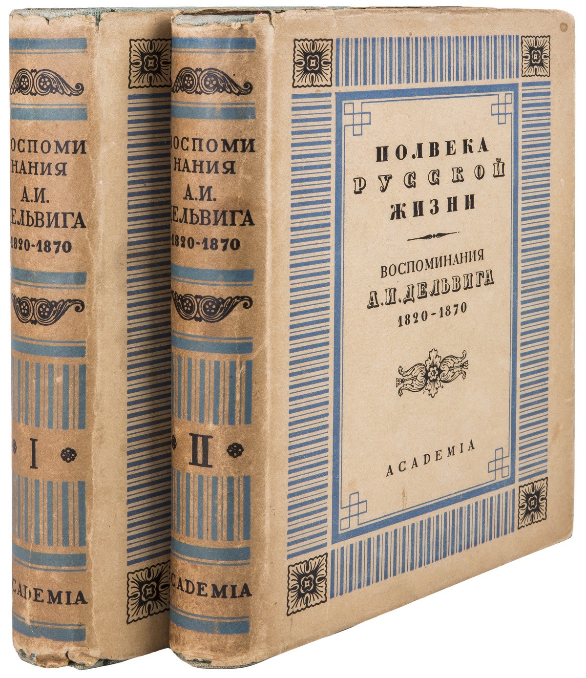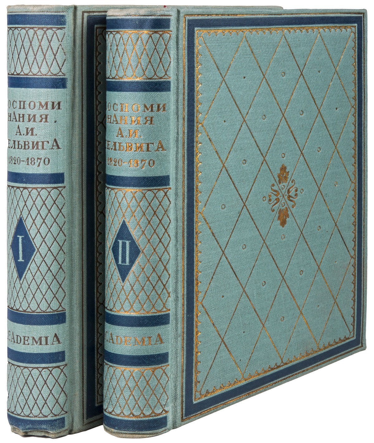 В двух цельнотканевых издательских переплетах с красочным и золотым тиснением по пер. крышкам и корешкам, в суперобложках. Орнаментированные форзацы. Переплет и суперобложка работы И.Ф. Рерберга. Тонированные «головки».