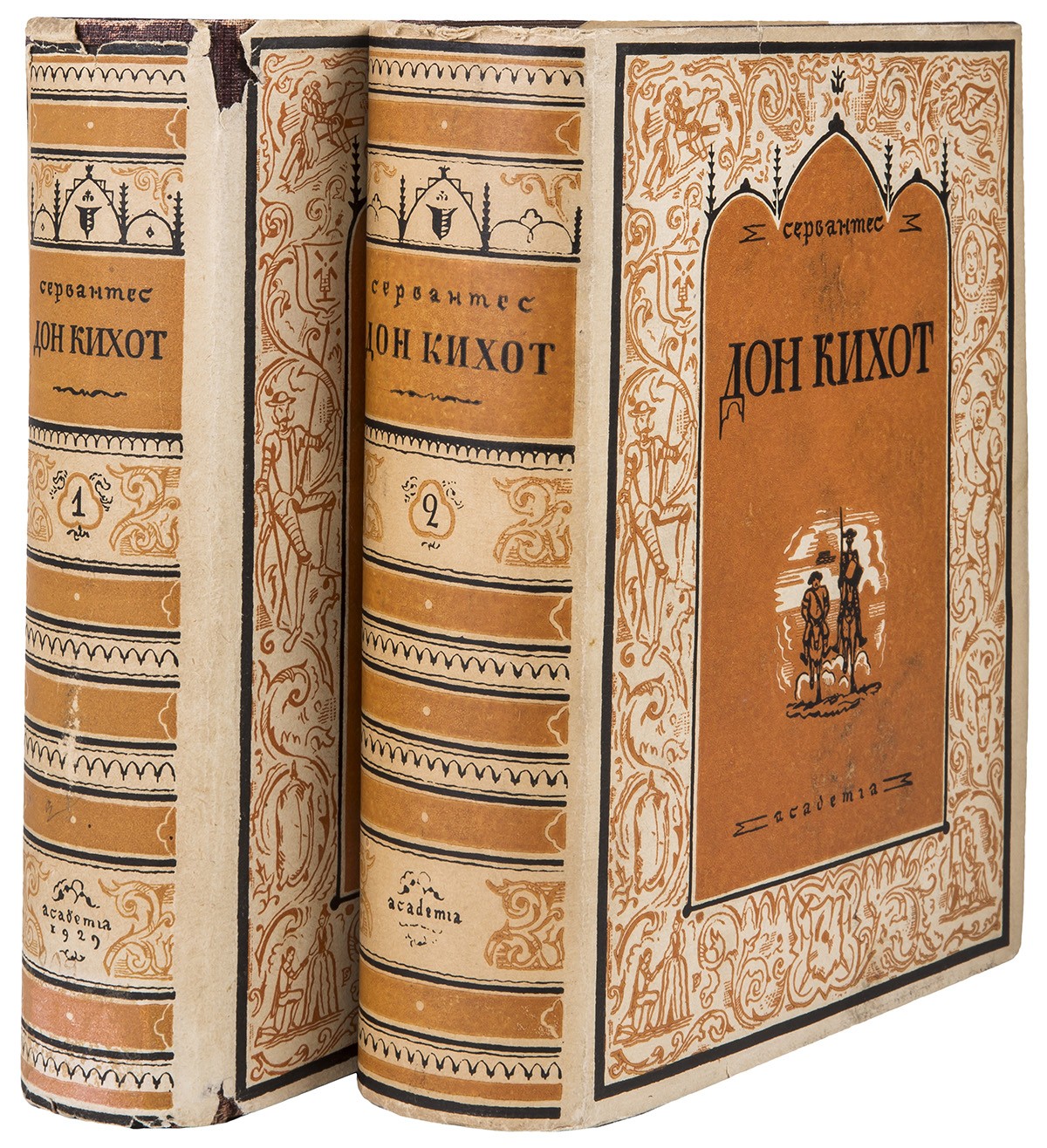 В двух издательских коленкоровых переплетах с тиснением по пер. крышкам и корешкам, иллюстрированных суперобложках. Иллюстрированные форзацы. Орнаментация книг С.М. Пожарского.