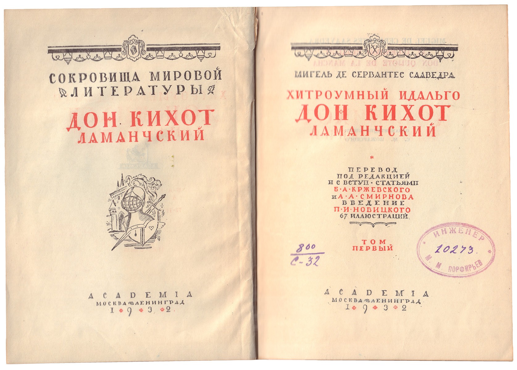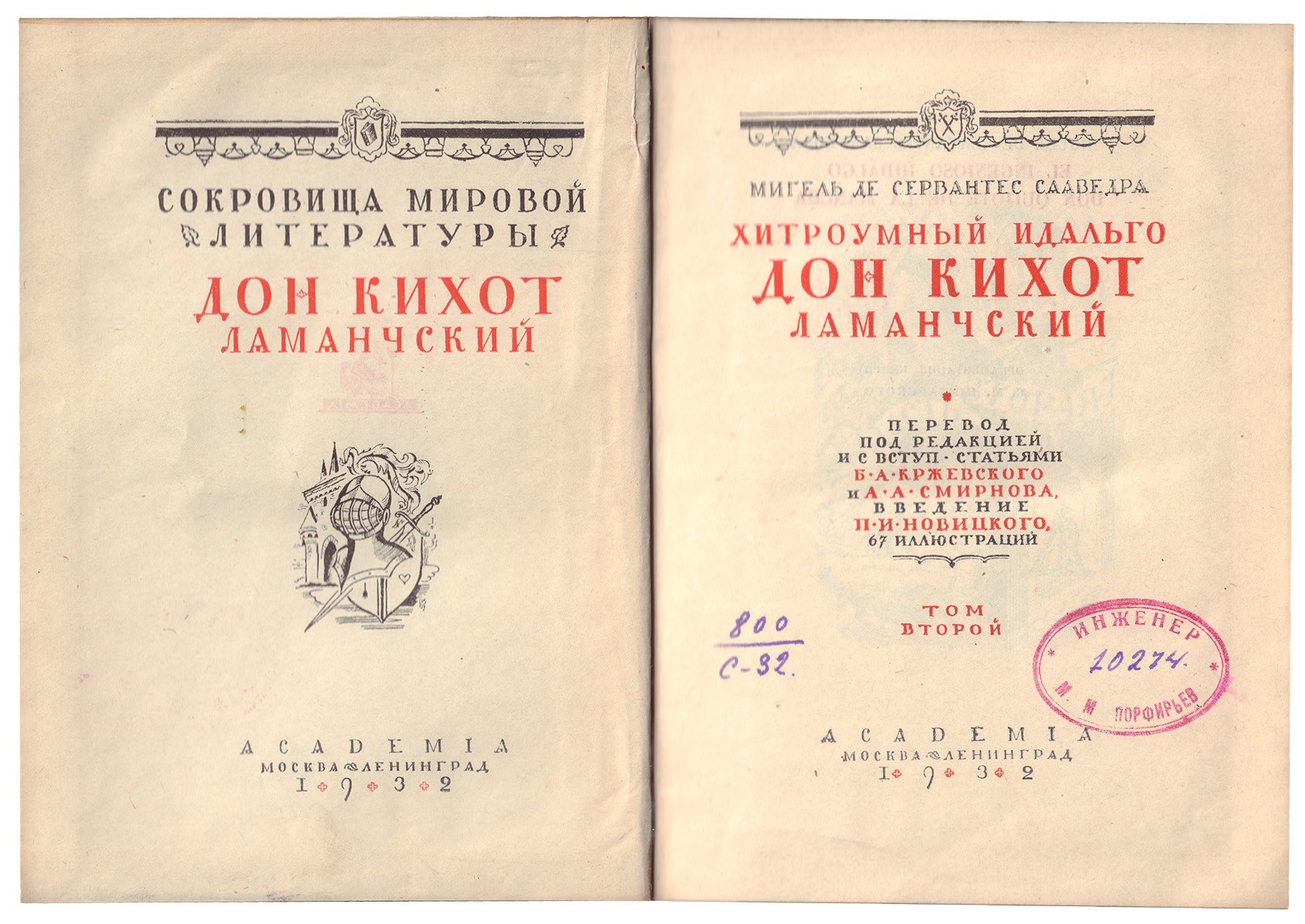 Неб. надрывы и утраты фрагм. суперобл. (т.1). Бум. этикетка на пер. крышке (т.2). Влад. штемп. экслибрис «Инженер М.М. Порфирьев» на тит. лл.