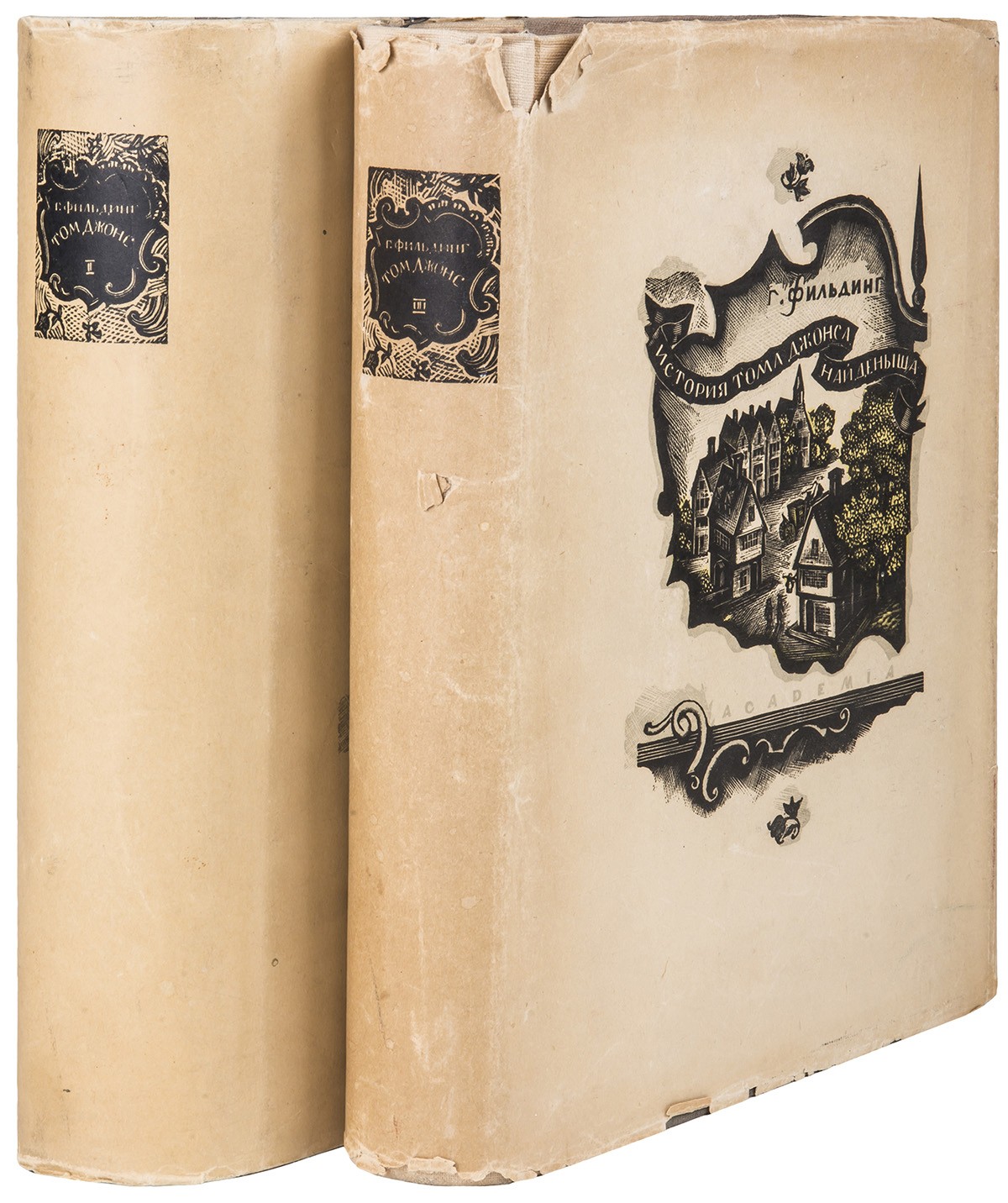 В двух издательских переплетах с тиснением по пер. крышкам и корешкам и иллюстрированных суперобложках. Суперобложка, переплет, титульные листы и иллюстрации работы С.М. Пожарского.