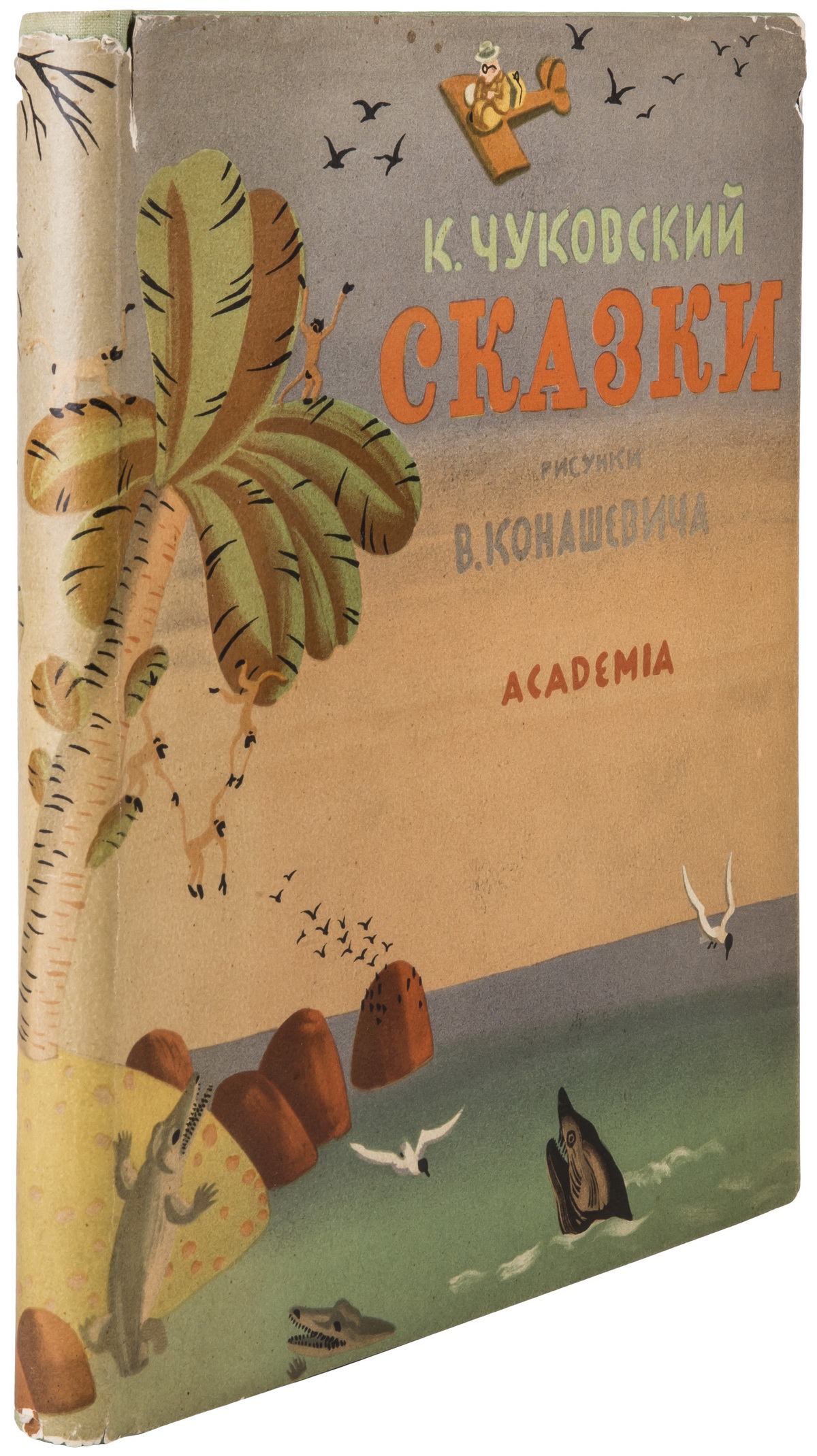 Знаменитое редкое издание сказок писателя Корнея Ивановича Чуковского (1882-1969), оформленное художником, графиком, детским иллюстратором Владимиром Михайловичем Конашевичем (1888-1963). Из-за работы над этим изданием Конашевич подвергся обвинениям в формализме и гонениям со стороны власти, продолжавшимся вплоть до начала Великой Отечественной войны.