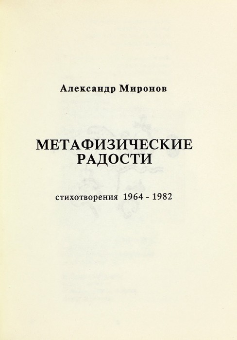 Александр Николаевич Миронов (1948-2010) — поэт, переводчик, видный представитель ленинградского андеграунда 1960-1980-х гг. После окончания школы работал библиотекарем, продавцом книг, сторожем на автостоянке, электромехаником лифтов, оператором газовой котельной. С середины 1960-х публиковался за рубежом («Грани»), позднее — в ленинградском самиздате («Часы», «Обводный канал» и др.). Входил в круг поэтов Малой Садовой, с 1966 года — в группу хеленуктов, возглавлявшуюся В. Эрлем. В 1970-х гг. Александр Миронов сблизился с В. Кривулиным и Е. Шварц. Именно Шварц, высоко оценивая творчество А. Миронова, предприняла серьезные усилия для публикации его основных поэтических сборников (2002 и 2009 годов). По мнению Дмитрия Волчека, первый из этих сборников — «Избранное» — вошёл в число поворотных явлений русской поэзии, завершив один век и открыв новый. Лауреат премии Андрея Белого, премии «Georgievich Award. Heaven 49». Награжден орденом «С Благодарностью от Человечества!» (2020).