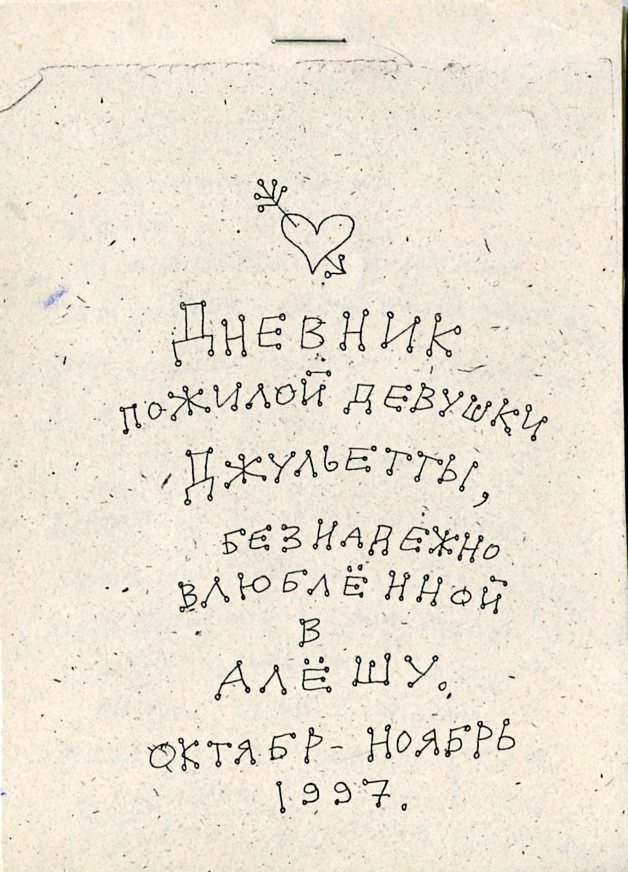 Экз. № 15 из 20. В иллюстрированной обложке работы Юлии Беломлинской. Авторская книга с дневниковыми записями, стихами и рисунками Юлии Беломлинской, посвященными Алексею Хвостенко. Сброшюрована вручную.