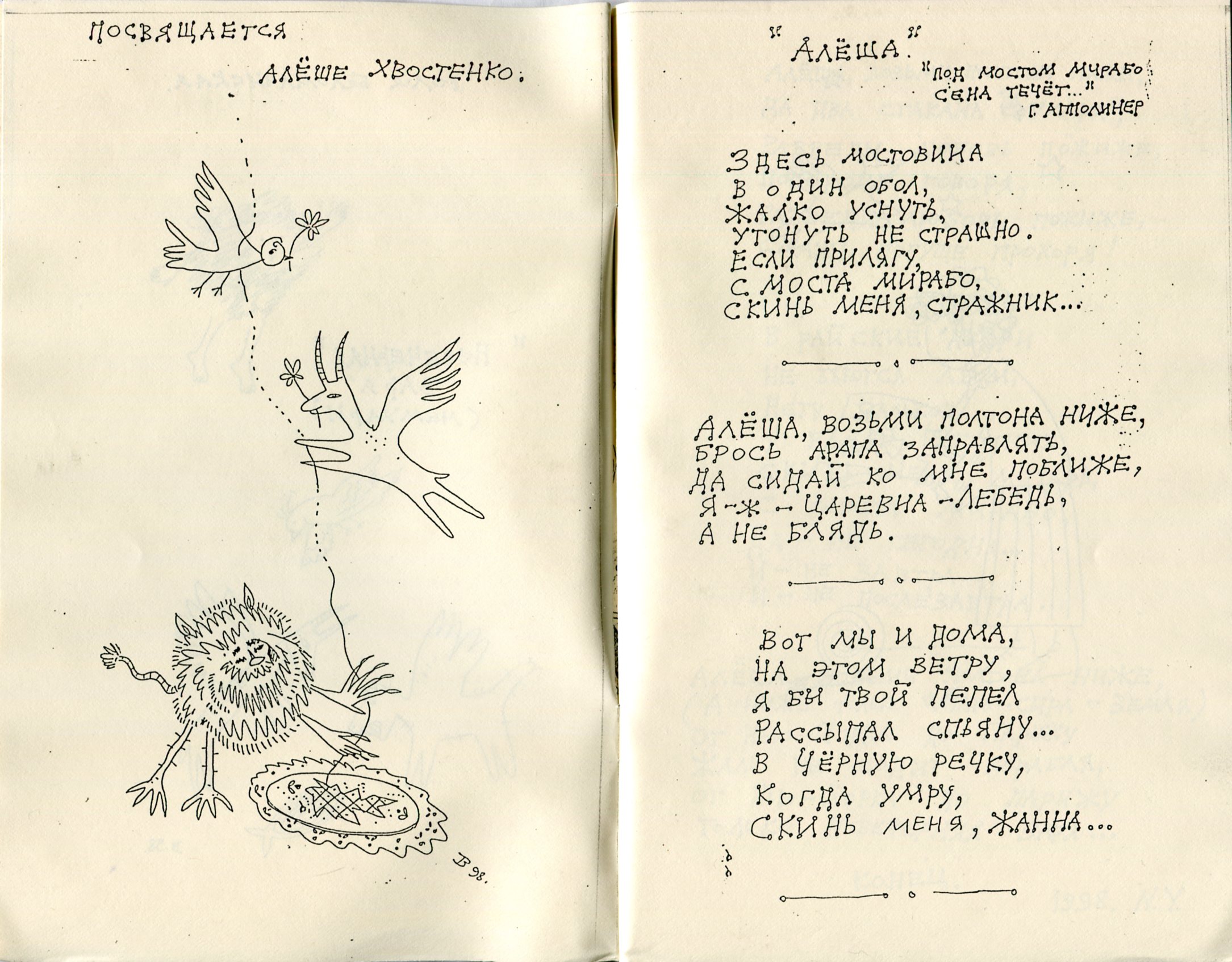 Экз. № 13 из 30. В иллюстрированной обложке работы Юлии Беломлинской. Авторская книга со стихами и рисунками Юлии Беломлинской, посвященными Алексею Хвостенко.