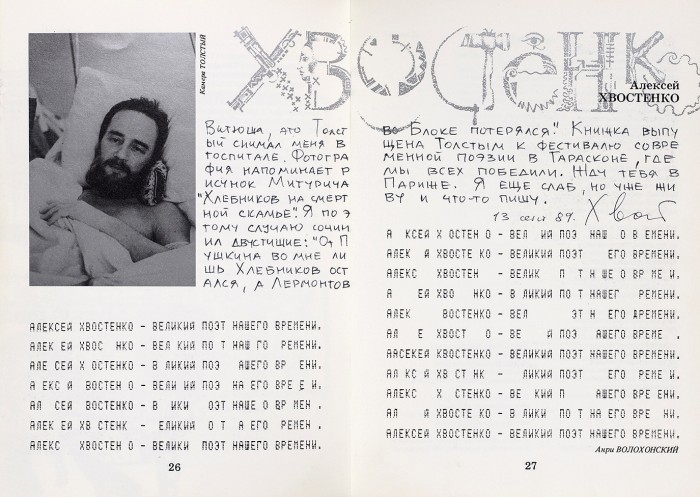 Транстарасконщина = Transtarasconschina: [Сборник]: Дудинский. Кедров. Арабов. Хвостенко. Кисина. Худяков. Искренко. Толстый. - М.; Париж: Вивризм, 1989. - 63 с.: ил., портр.; 21х15,1 см.