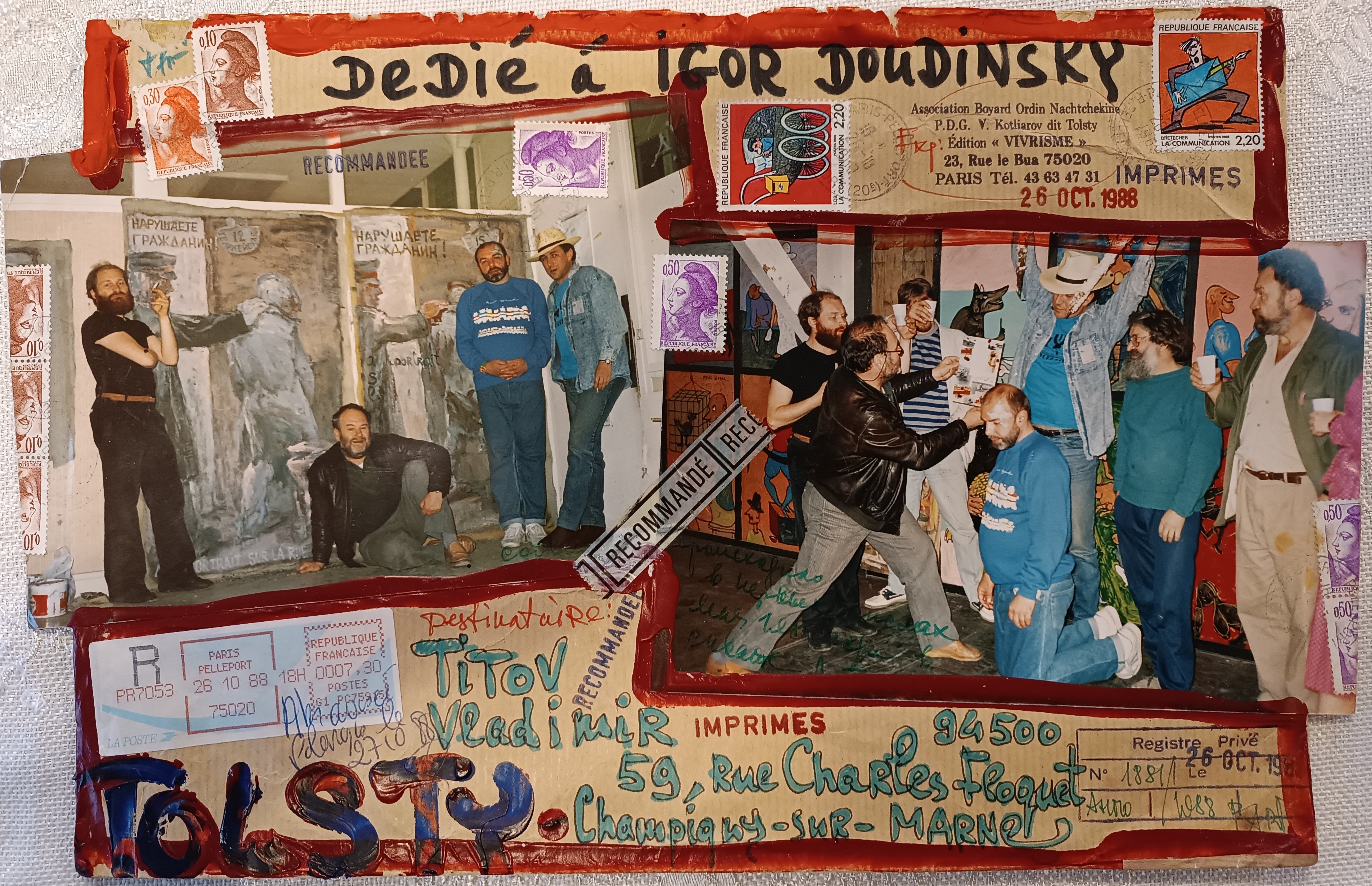 Владимир Соломонович «Толстый» Котляров (1937—2013) — художник, поэт, актер, редактор и издатель литературно-художественного альманаха «Мулета» и газеты «Вечерний звон». В 1979 году эмигрировал во Францию, где основал художественное движение «вивризм» (от vivre — жить). В 1995 году изобрел новое направление в живописи: начал «уничтожать» деньги, расписывая политическими и философскими текстами и лозунгами, превращая банкноты в произведения искусства. Одним из первых во Франции и России начал активно заниматься мейл-артом.