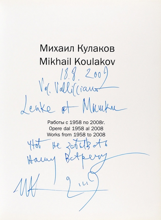 На с. 5 дарственная надпись художника, адресованная Елене Щаповой: «18.8.2009 Vol. Vallicciano Lенке от Мишки чтоб не забывать нашу встречу М. Кулаков».