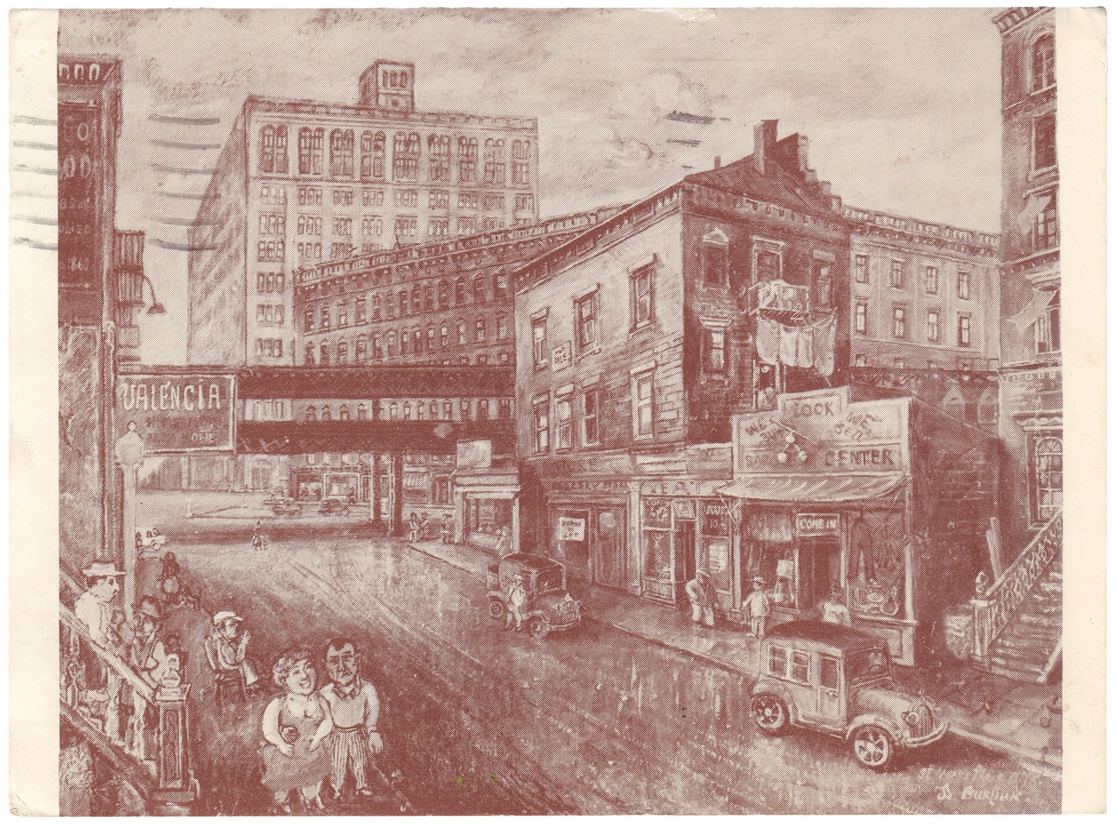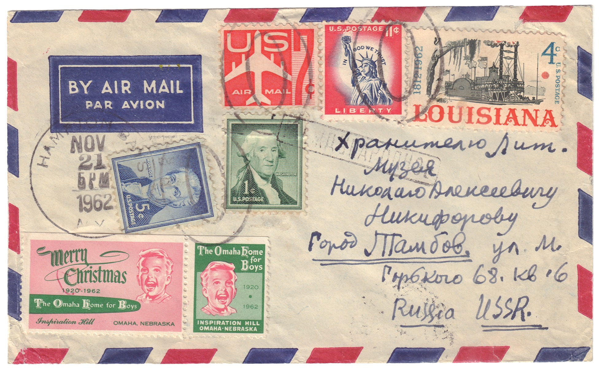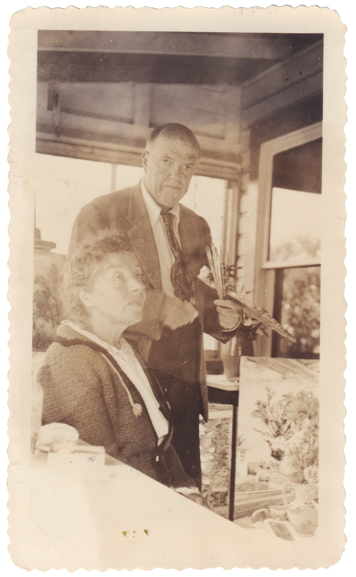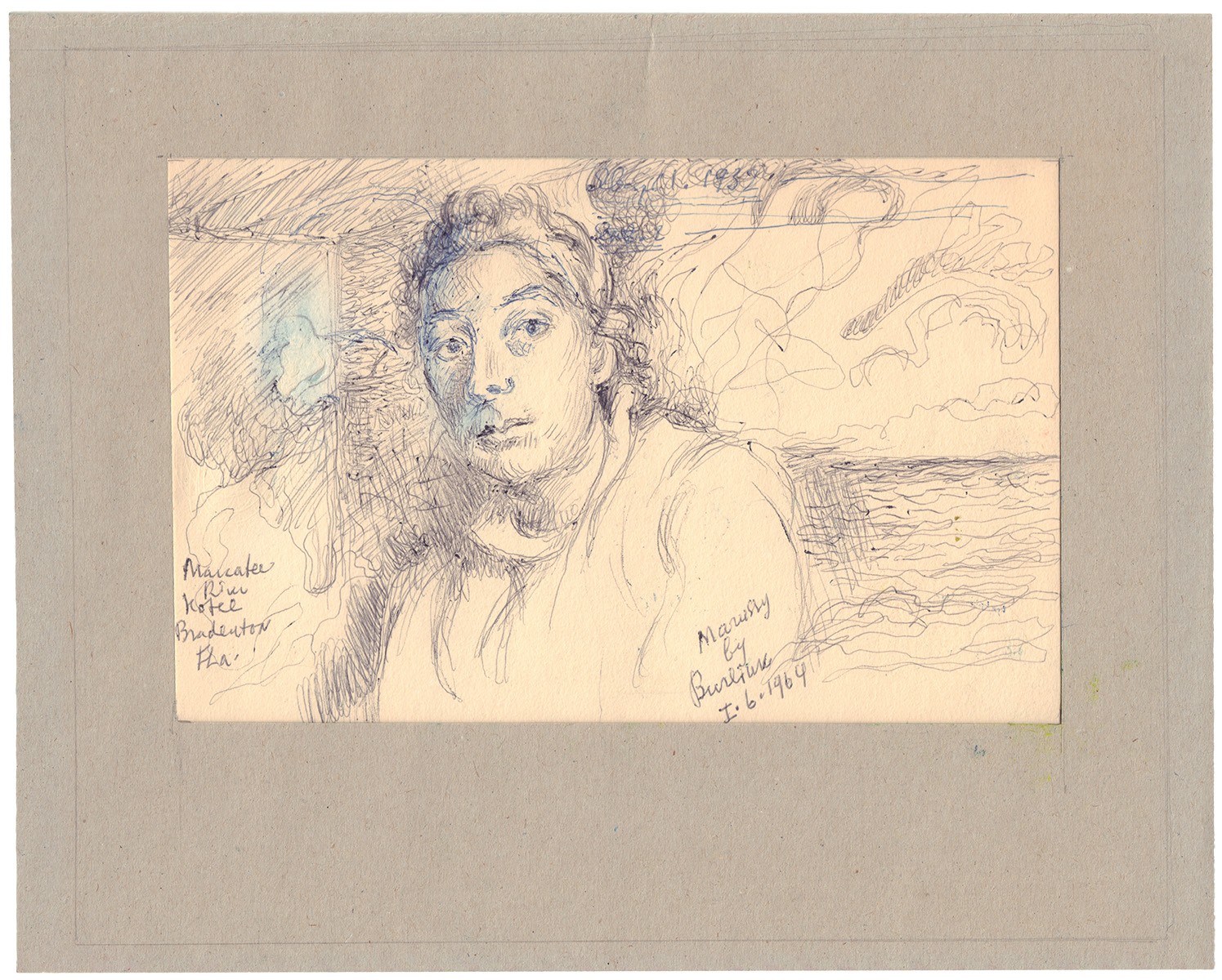 1. Бурлюк, Д.Д. Дерево. - 1928. Бумага, карандаш. - 27,6х35,2 см. Авторская подпись с датой справа внизу. Штамп Mary Birluik Art Gallery на лицевой стороне. 2. Бурлюк, Д.Д. Деревенский дом на фоне мужского портрета. - 1920-е. Бумага, карандаш. - 27,6х35,2 см. Авторская подпись справа. Штамп Mary Birluik Art Gallery слева внизу. На обороте - штамп художественного музея С.Н. Денисова. 3. Бурлюк, Д.Д. Пейзаж с лодкой. - 1931. Бумага, цветные карандаши. - 22,6х15,6 см. Авторская подпись справа внизу. 4. Фотография «Давид и Мария Бурлюки за работой во Флориде». - 1948. - 11,5х7 см. Рукописный текст на обороте. 5. Фотография «Давид и Мария Бурлюки». - 1956. Фотограф - Николай Никифоров. - 11,5х7 см. 6. Фотография «Давид Бурлюк и Николай Никифоров». - 1956. - 11х8 см. Штампы «Давид Бурлюк 22-VII-1882 — 15-I-1967» и «К 100-летию со дня рождения» на обороте. 7. Две фотографии, сделанные во время визита Давида Бурлюка в СССР у библиотеки-музея В.В. Маяковского. - 1956. - 11,5х15,7 см; 11,3х13,9 см. На оборотах фотографий - штампы «Фонд Д. Бурлюка из собрания НАН». Давид Давидович Бурлюк, один из ближайших друзей Маяковского, в мае 1956 года приезжал в Москву. Здесь он посетил Библиотеку-музей В.В. Маяковского и провел творческий вечер, на котором рассказывал о своем знакомстве с поэтом, о начале их совместной творческой деятельности , о поездке Маяковского в Америку, о своих усилиях по изучению и пропаганде творчества поэта за рубежом. Сохранился целый ряд фотографий, запечатлевших этот визит, а также ценнейшая магнитофонная запись вечера. 8. Почтовый пакет, адресованный Н. Никифорову. - 1957. - 27,1х36 см. Рукописный текст и штамп Buriuk Gallery. 9. [Сикорский, Н.С., автограф] Письмо-конверт от Давида и Марии Бурлюков с рисунками художника, адресованное Н.А. Никифорову, с конвертом. - 1959. - 14х18,5 см; 10,6х24,2 см. В письме присутствуют стихотворения Д. Бурлюка «Путь» («Тропа моя обледенела...») и «Какой глухой слепой старик...». На обоих конвертах - штамп Mary Birluik Art Gallery. На письме-конверте - рукописный текст «Mrs David Burliuk / Bradenton Beack / FLA» авторства Николая Сикорского, о чем свидетельствует текст Бурлюка рядом с надписью. 10. Письмо Давида и Марии Бурлюков, адресованное Н. Никифорову, с конвертом. - 1959. - 27,6х21,2 см; 10,5х24 см. Рукописный текст на обеих сторонах письма. Штамп Mary Birluik Art Gallery. В письме Д. Бурлюк весьма нелестно отзывается об американском художнике Рокуэлле Кенте: «... забыть этого миллионера, балующегося в искусство... он издатель ... он сменил 3 жен; переделал церковь в студию, имеет собств. железную дорогу... Он коммерческого типа художник-иллюстратор - Стилизатор (вроде Рериха, но тот был колористом - ученик Куинджи ...). Не упоминайте мне его; не сравнивайте меня с ним - это меня обижает. Я вам уже об этом писал ... Купцы! Баста!». 11. Открытое письмо Давида и Марии Бурлюков, адресованное Н. Никифорову. - 1961. - 10,4х14,2 см. Рукописный текст на обороте. В тексте упоминается художник Дмитрий Краснопевцев: «... посылаем вам на "долгих" – всячину и Краснопевцеву». Художники познакомились во время приезда Бурлюков в Москву в мае 1956 года. С Бурлюком Краснопевцев не только долгое время состоял в переписке, но и обменивался произведениями. Зная об интересе молодого художника к редким раковинам, БУрлюк отправил ему несколько тихоокеанских экземпляров, которые он сам любил рисовать в 1930-е годы. Так, на закате дней Бурлюку суждено было стать своего рода связующим звеном между двумя поколениями русского авангарда. 12. Фо
