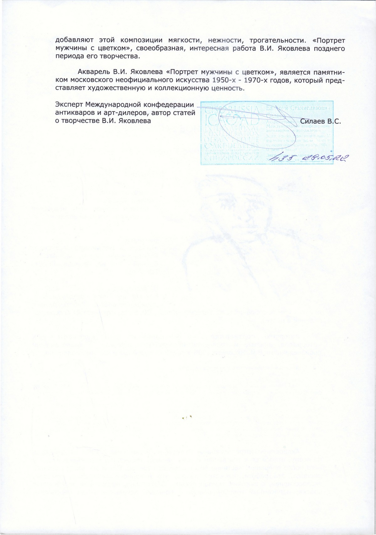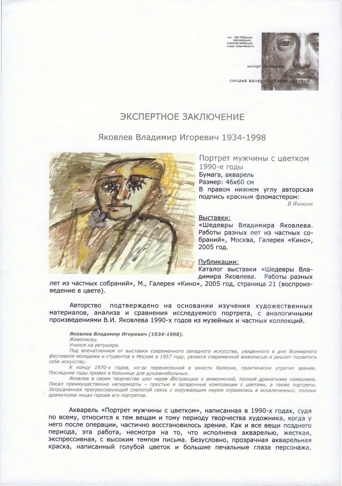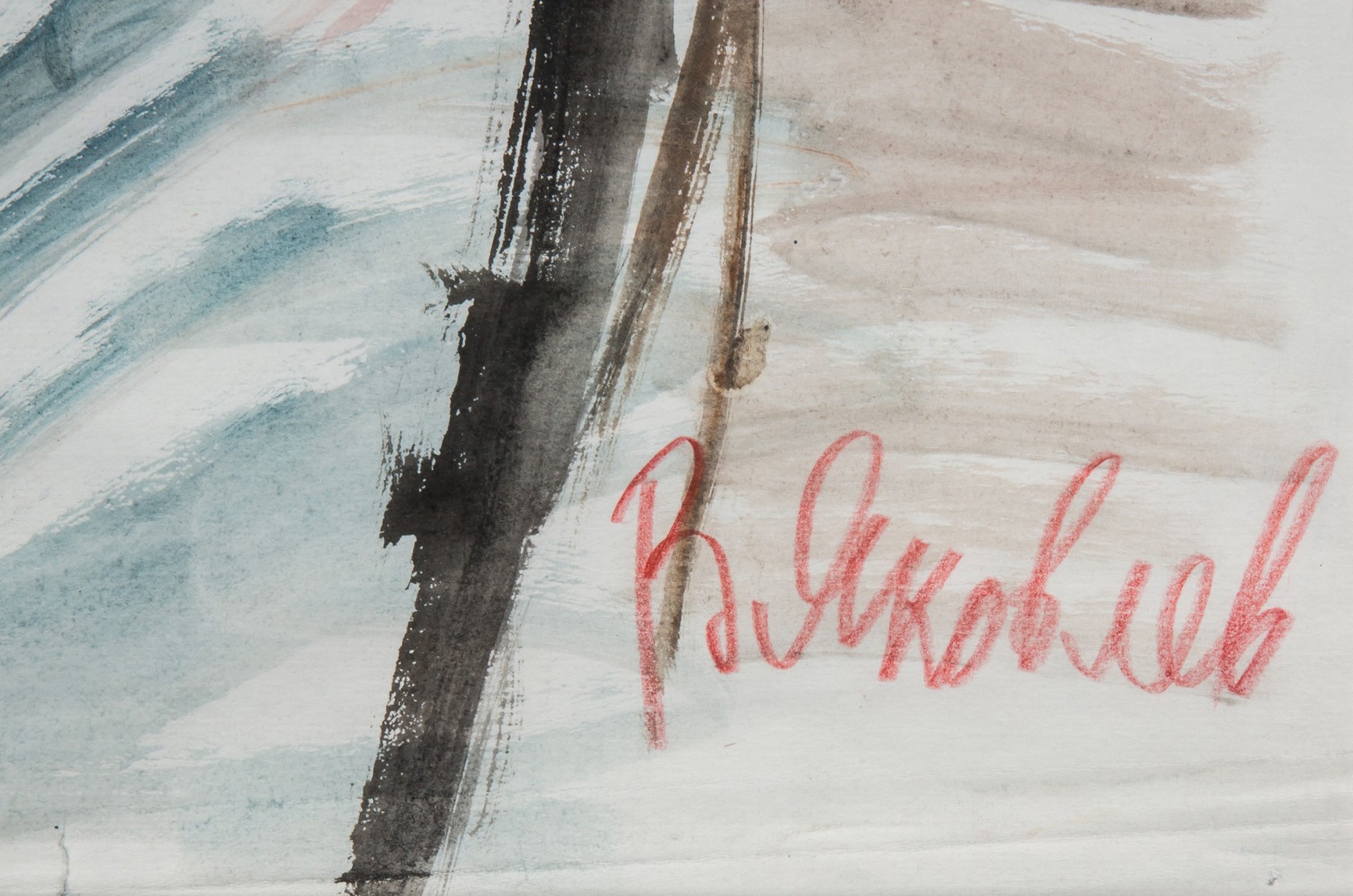Владимир Игоревич Яковлев (1934-1998) - представитель «неофициального» искусства». Внук пейзажиста Михаила Яковлева. Посещал мастерскую Василия Ситникова. В конце 1950-х г. вошел в круг московских нонконформистов. После 1983 года не покидал психоневрологического диспансера и почти полностью ослеп. В 1990-1991 гг. работы художника были показаны на выставке «Другое искусство. Москва 1956-1976», организованной ГТГ и ГРМ. В 1995 г. состоялась персональная выставка в ГТГ.