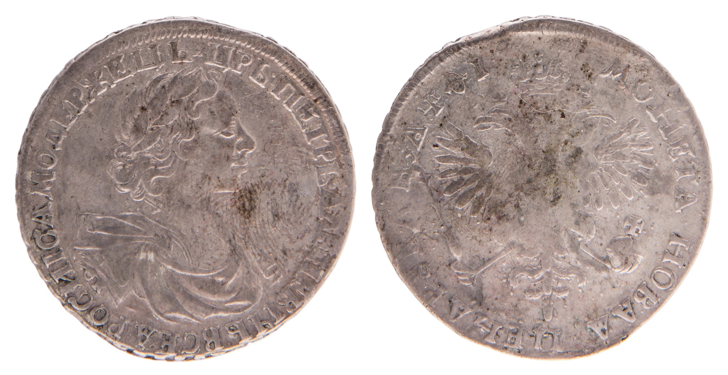 Красный монетный двор. Биткин № 817 R. Дьяков: "ОК ", без пряжки на плаще, без вышивки на рукаве, без заклепок на латах, без арабесок на груди, трилистник над головой / Без инициалов.