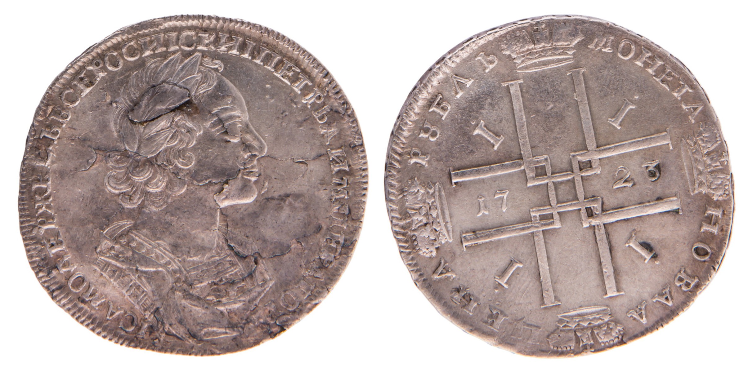Красный монетный двор. Биткин № 916. Дьяков: Лента на груди украшена "точка овал точка овал точка" / "•" над римскими цифрами в монограмме.