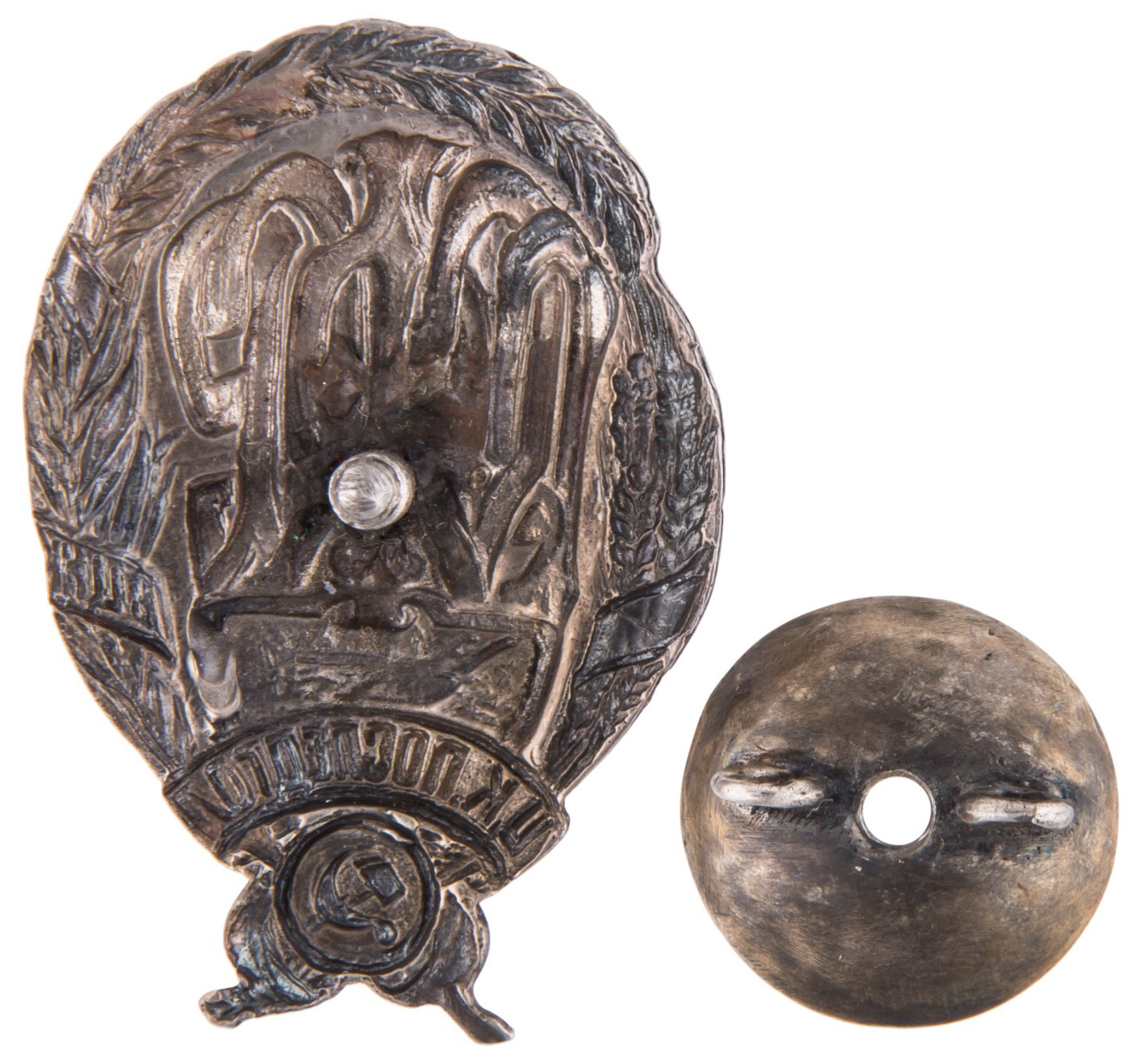1920-е гг. Оригинальная закрутка. Механошин, Калистратов, Воронченко "Знаки добровольных обществ СССР" № 25.1 (редкость 5). Каталог "Аверс № 8" № 1823. 3000-4000 у.е. Крайне редок.