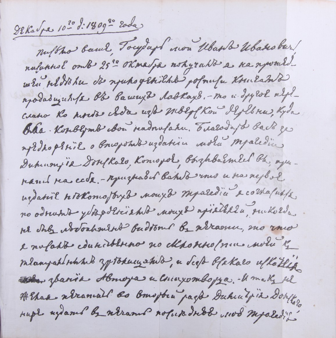 1 л. факсимиле письма В.А. Озерова. В полукожаном переплете эпохи.