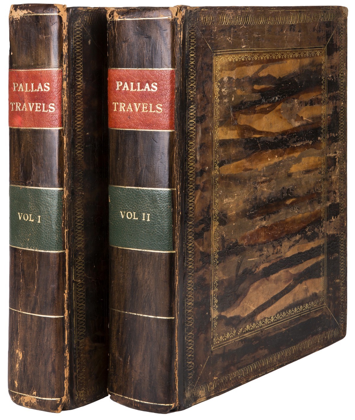 В двух цельнокожаных переплетах с золотым орнаментальным тиснением по крышкам и корешкам. Золотые дублюры. Тройные мраморированные обрезы. Форзацы оклеены бумагой «под мрамор». На англ. яз.