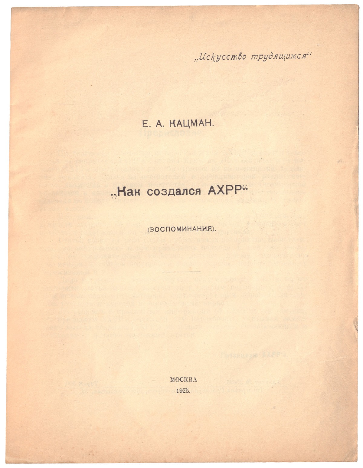 Ассоциация художников революционной России (АХРР) — крупное объединение советских художников, графиков и скульпторов, являвшееся, благодаря поддержке государства, самой многочисленной и мощной из творческих групп 1920-х годов. АХРР основан в 1922 г., распущен — в 1932; стал предтечей единого Союза художников СССР.