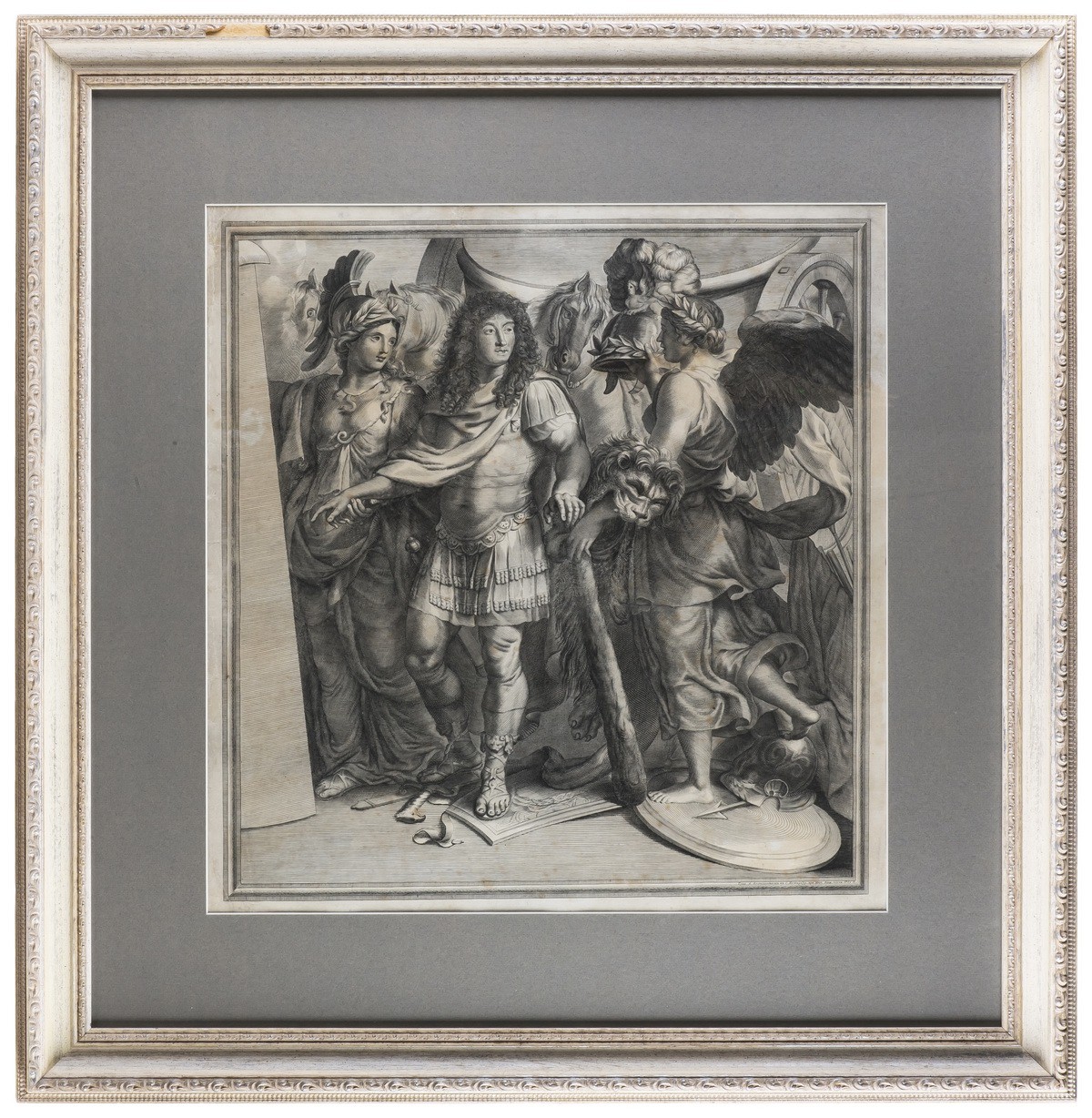 В раме, паспарту, под стеклом.