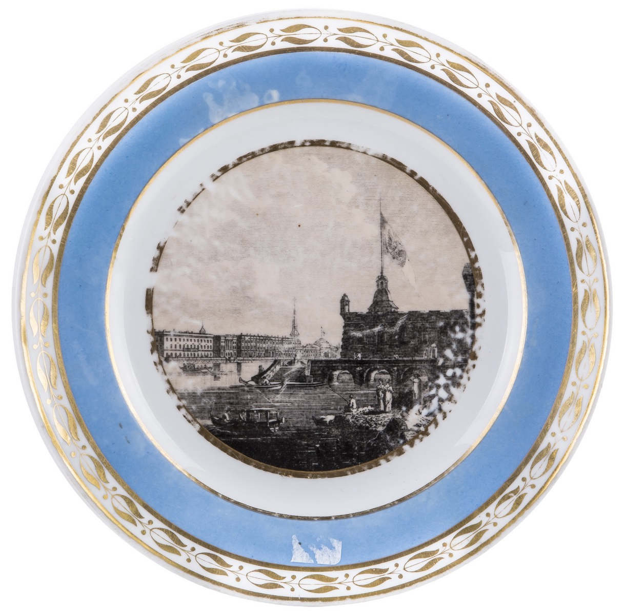 Декоративная тарелка с видом Санкт-Петербурга. - Россия, Императорский фарфоровый завод, первая треть XIX века. - Диаметр: 24 см.