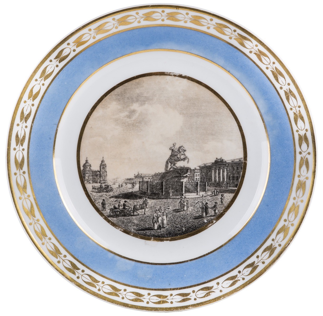 Фарфор, голубое крытье, надглазурная роспись, золочение. Без марок.