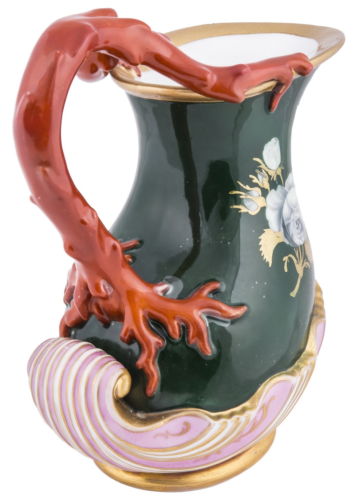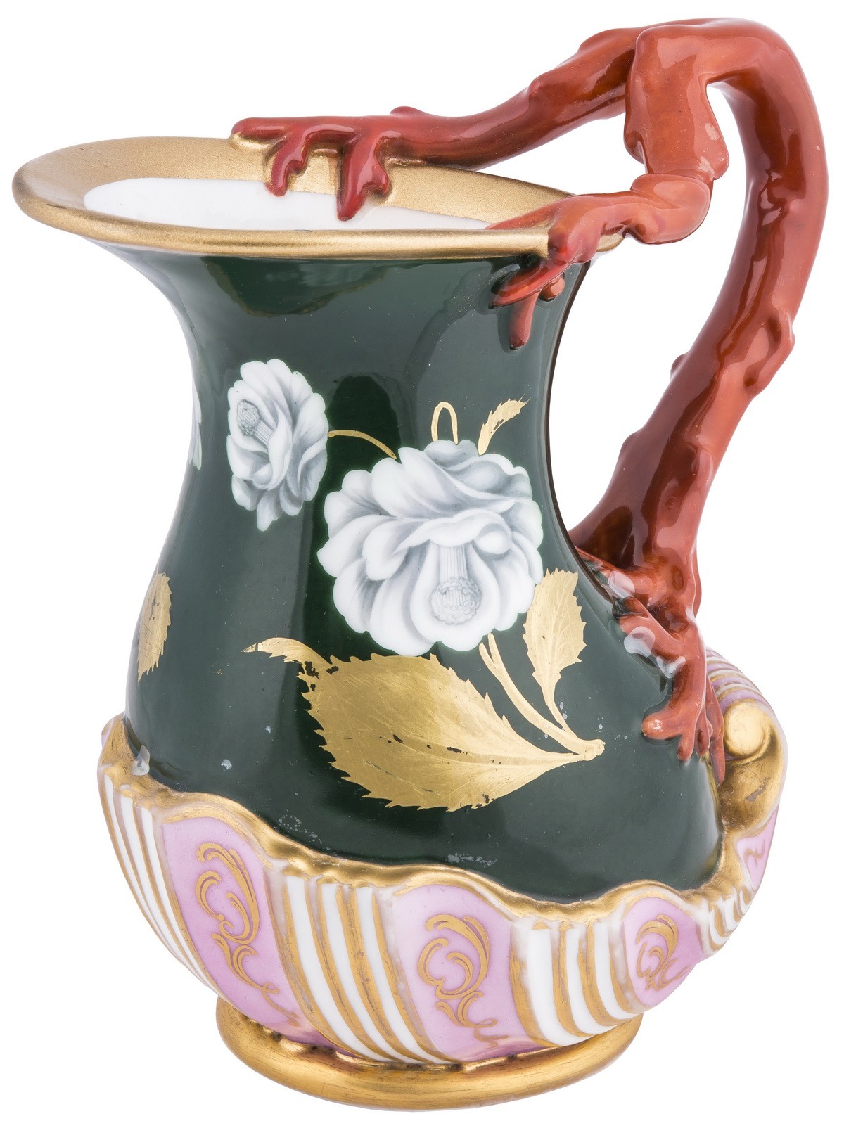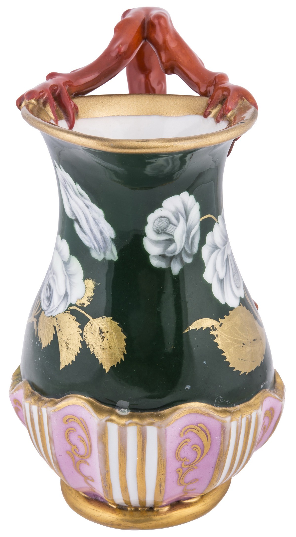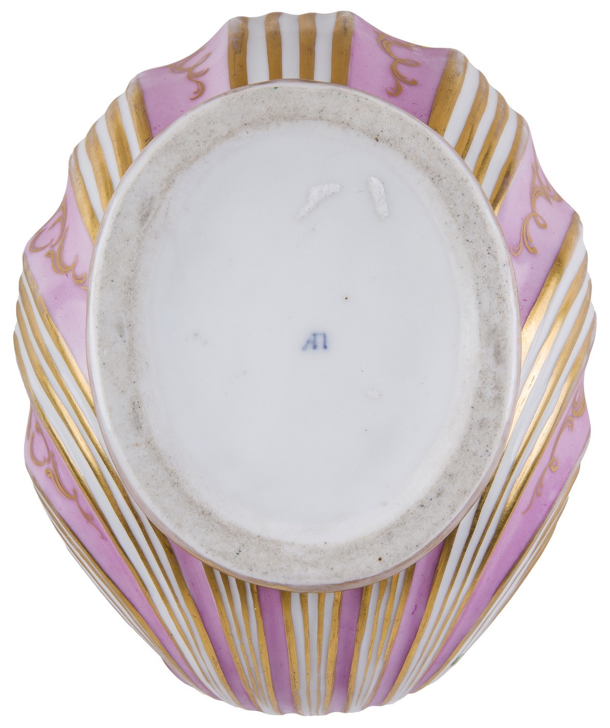 Фарфор, крытье надглазурное полихромное, роспись надглазурная полихромная, золочение. Марка в тесте: синяя подглазурная «АП».Поновление золочения.