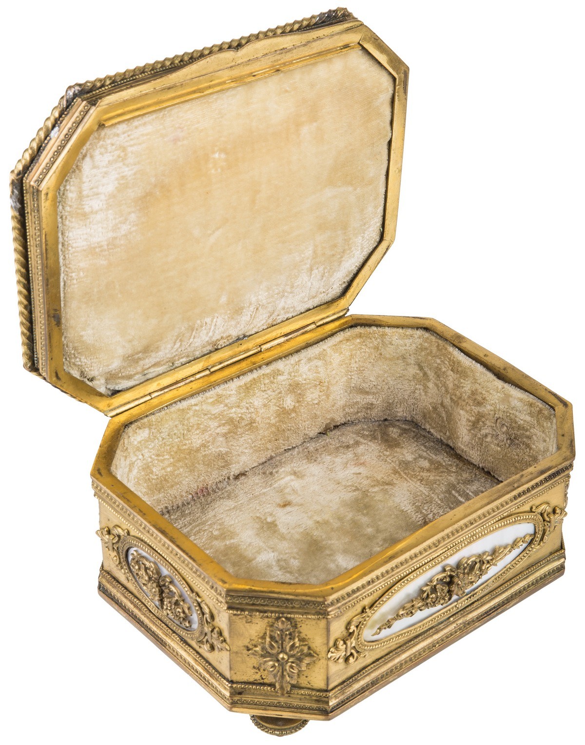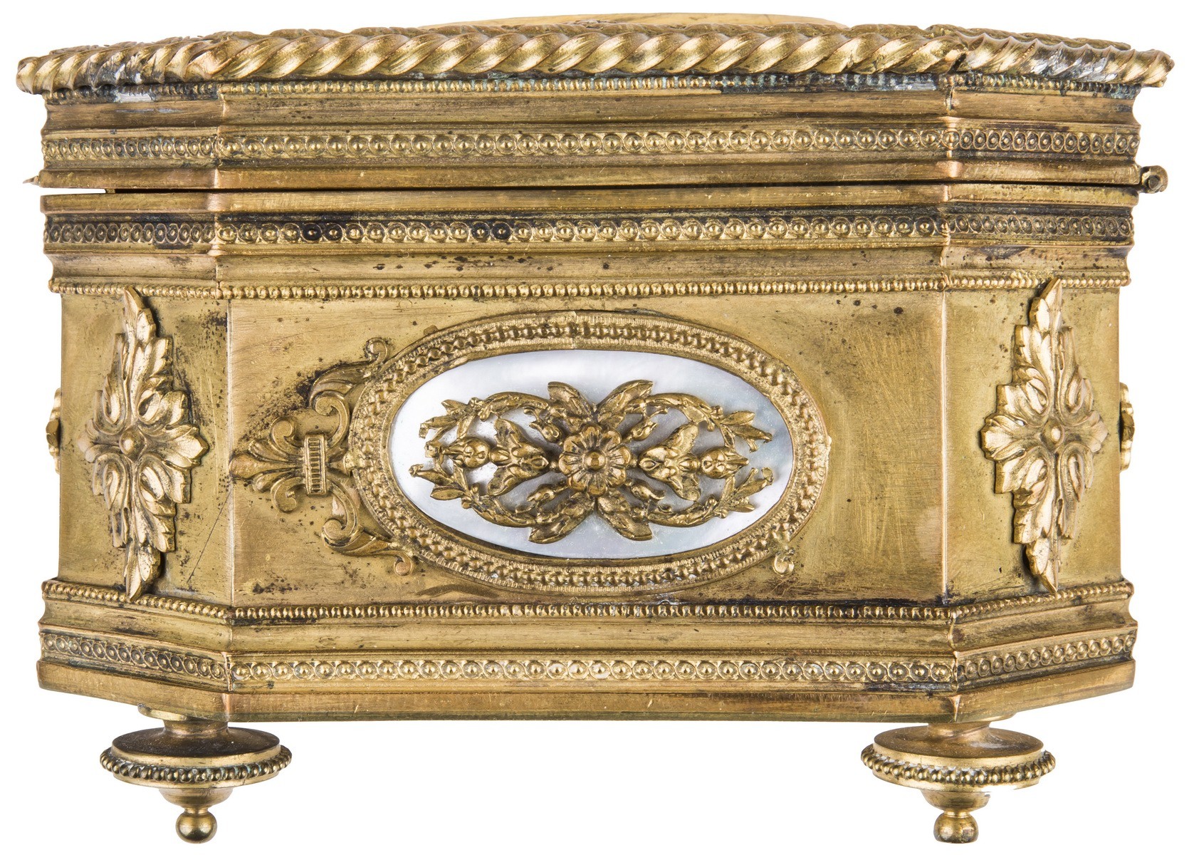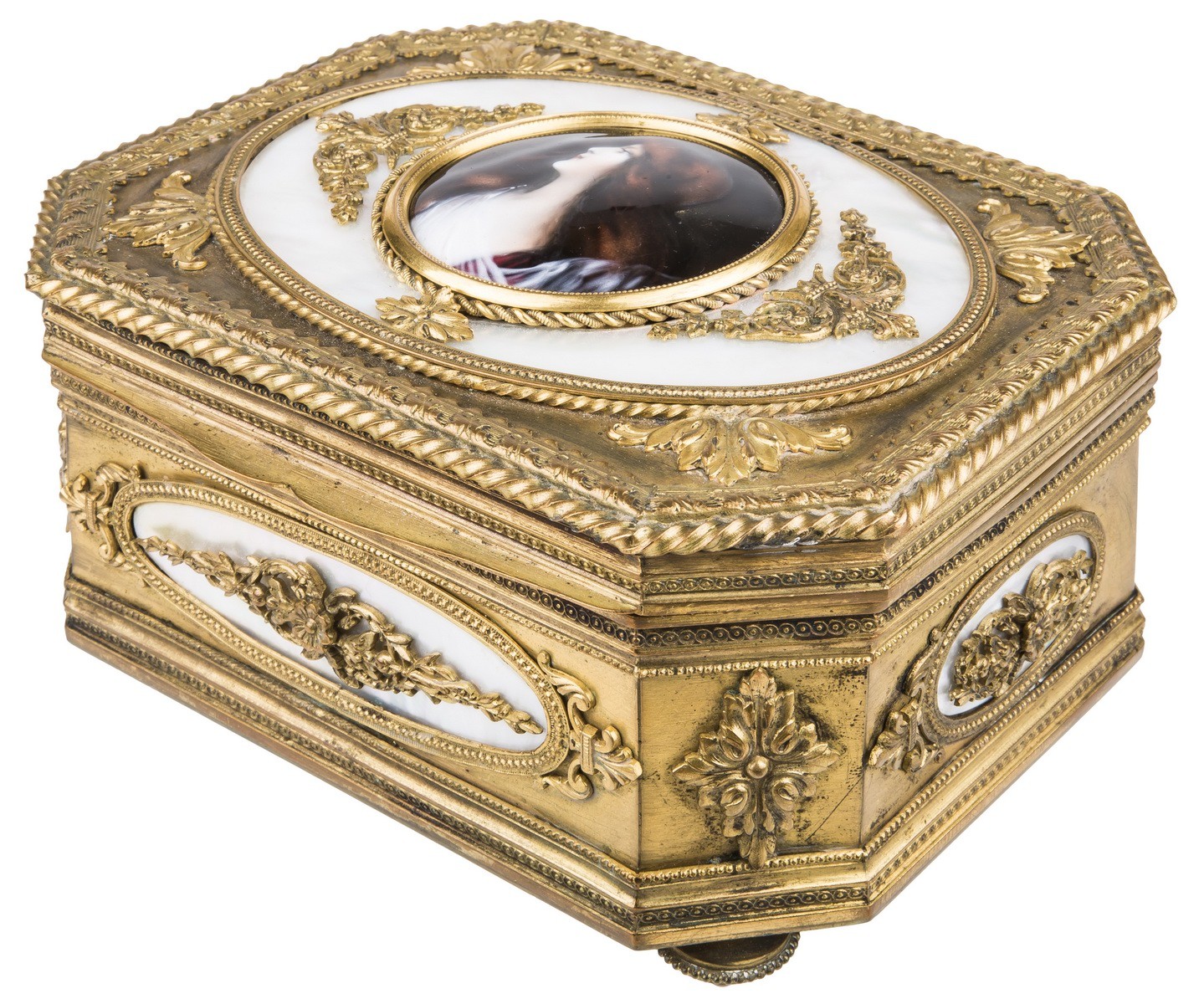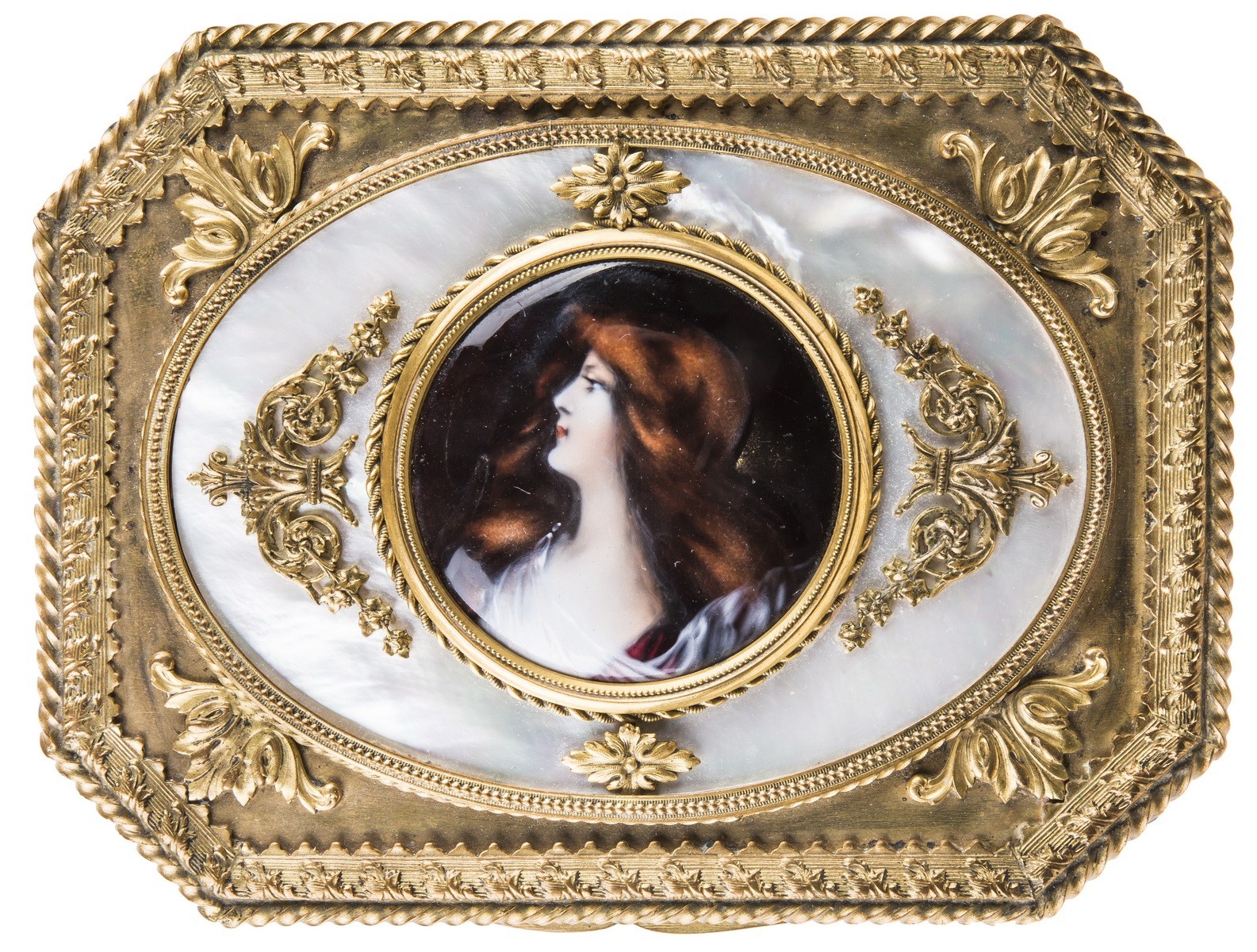 Медный сплав, литье, штамп, перламутр, фарфор, роспись.