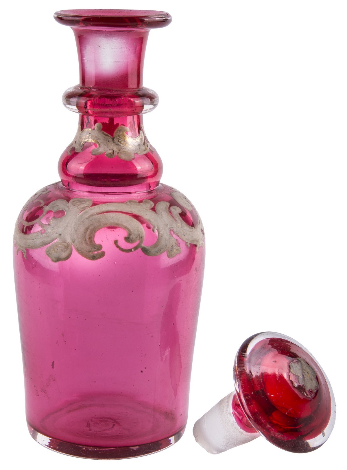 Стекло матовое бесцветное, люстр фиолетовый, роспись.