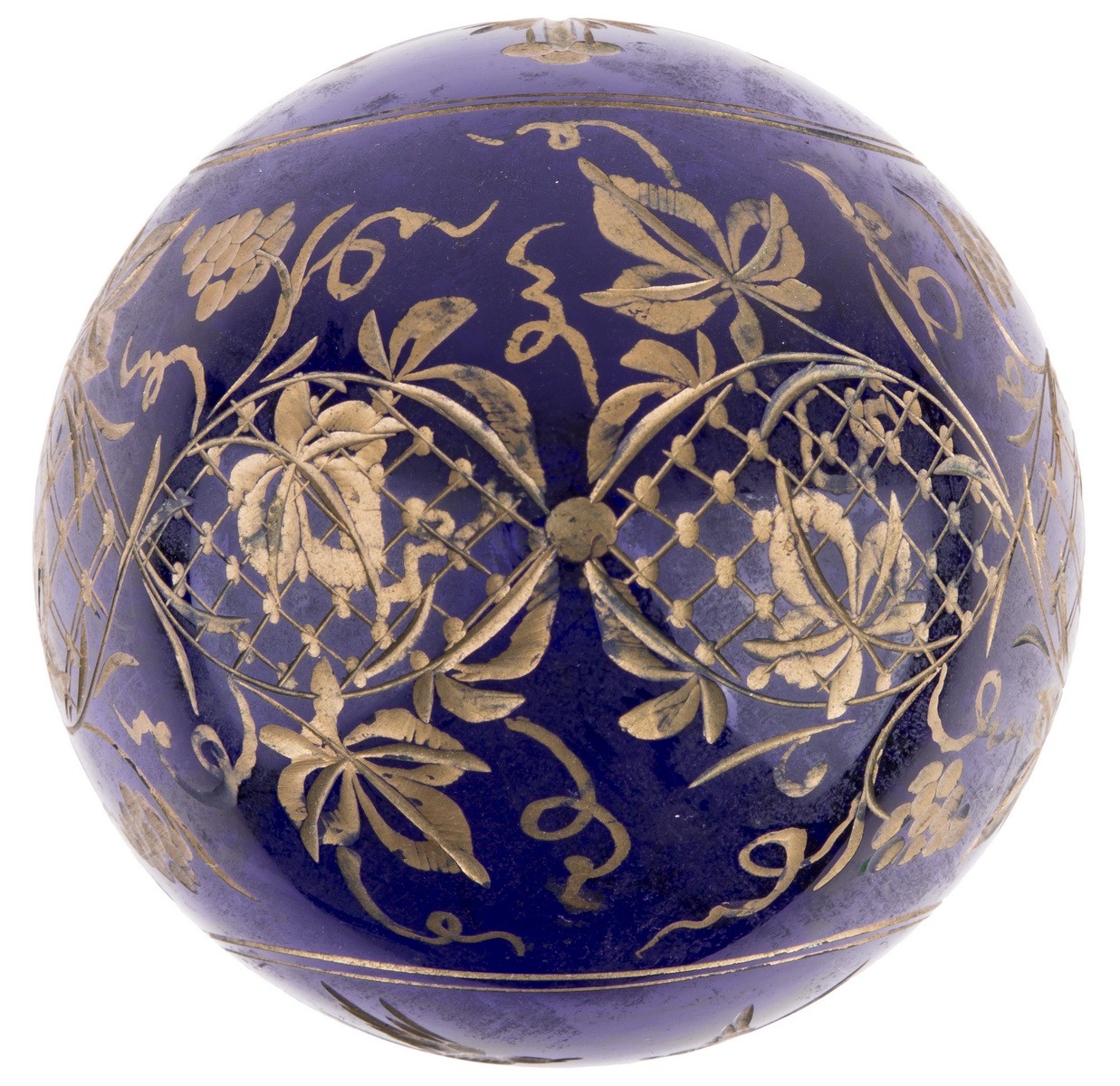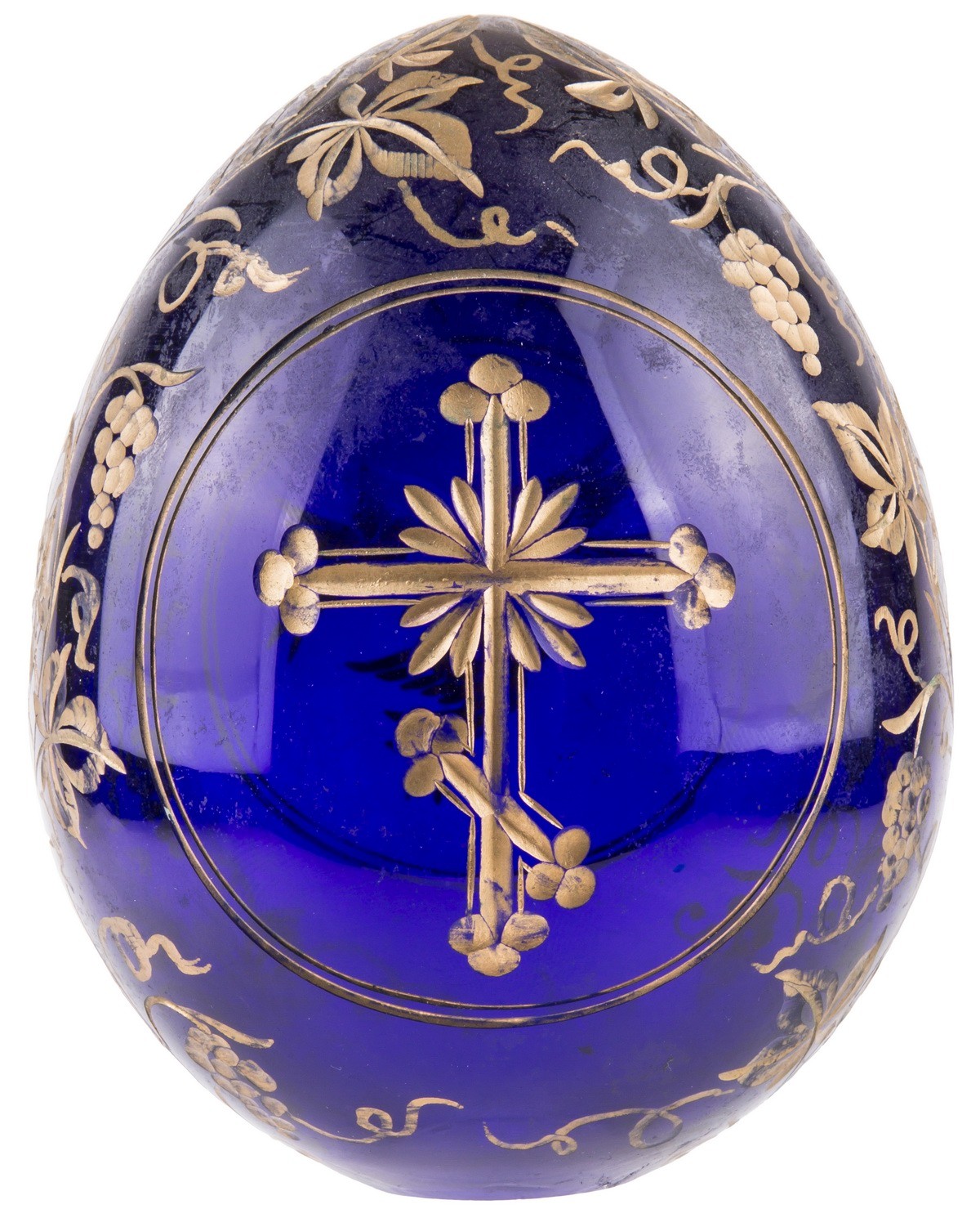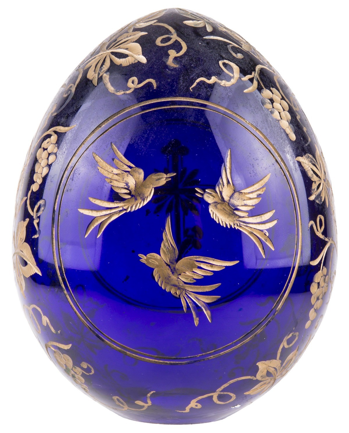 Цветное стекло, резьба, роспись золотом.