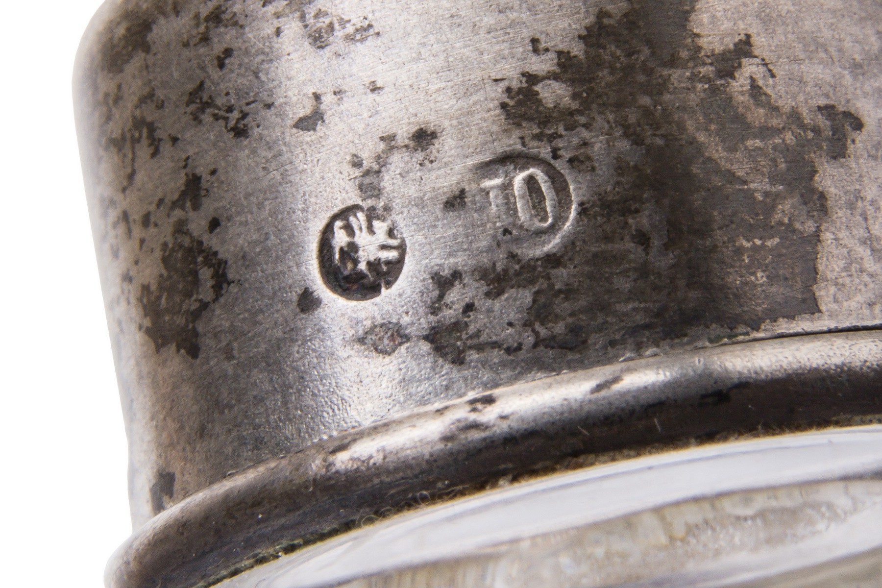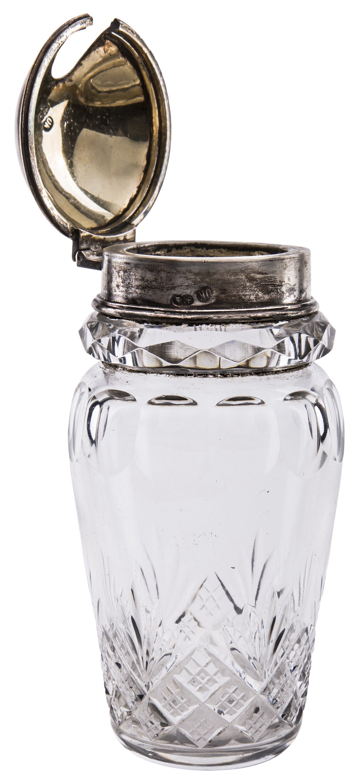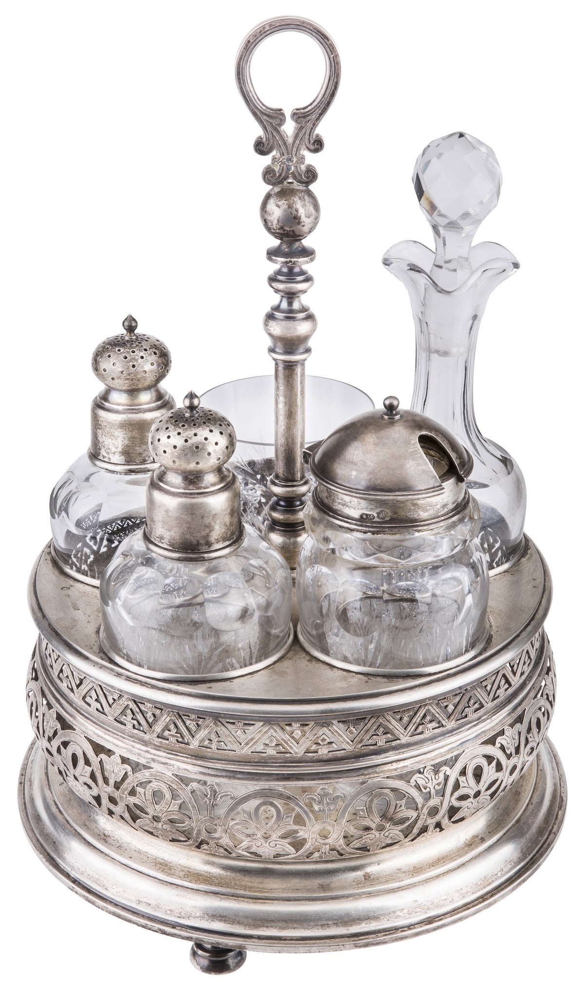 Серебро, чеканка, просечка, золочение; стекло, резьба, шлифовка. Клейма: «Георгий Победоносец на коне, поражающий копьем дракона» - городовое клеймо Москвы (1880-е); «84» - проба серебра; - «О.КУРЛЮКОВ» - фабрика серебряных изделий Ореста Федоровича Курлюкова (1884-1916) - владелец фабрики серебряных изделий (1884-1916).
