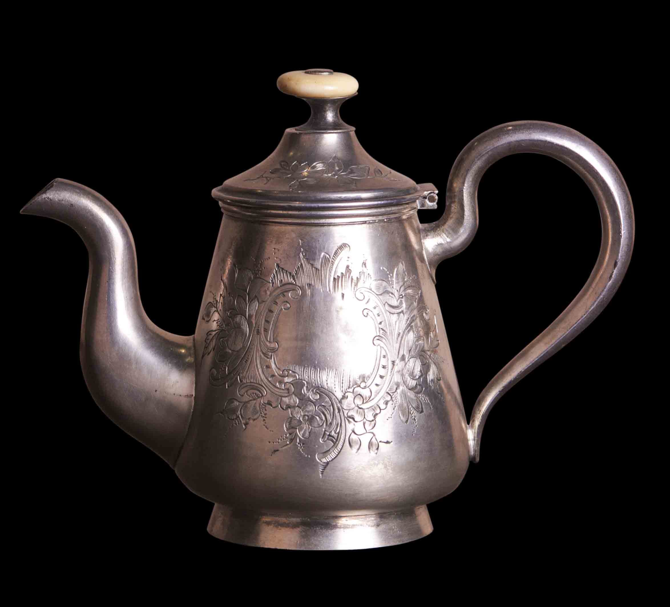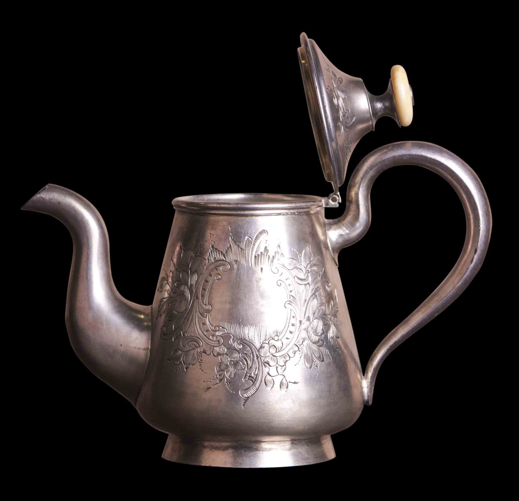 Серебро, резьба. Клейма: проба серебра «84», женская головка, повернутая влево, инициалы управляющего округом «И.Л.» (Иван Лебедкин); клеймо мастера «Х И».