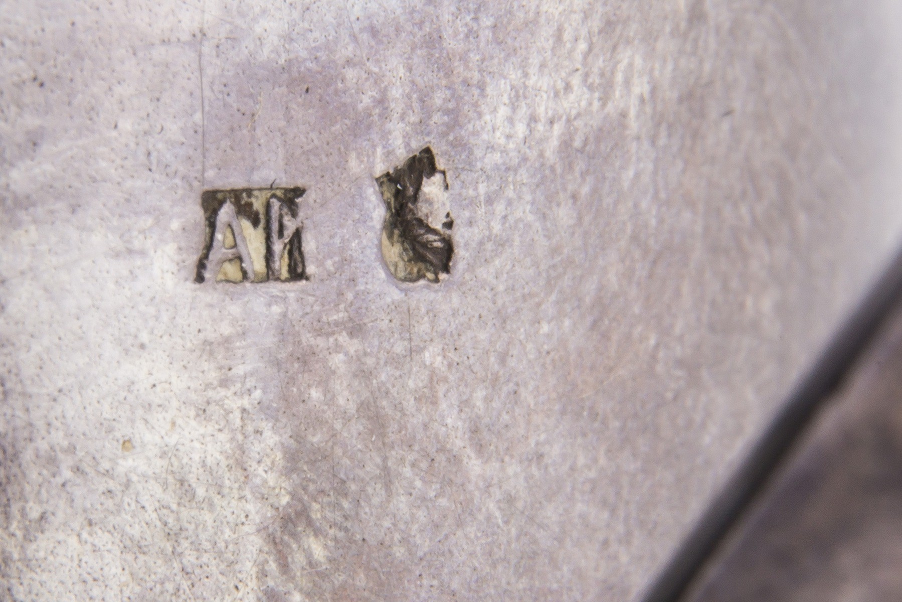 Серебро, золочение. Клейма: «женская голова в кокошнике, повернутая влево» - клеймо для серебряных изделий (1899-1908), «84» - проба серебра, «АН» (?) - неизвестный мастер.