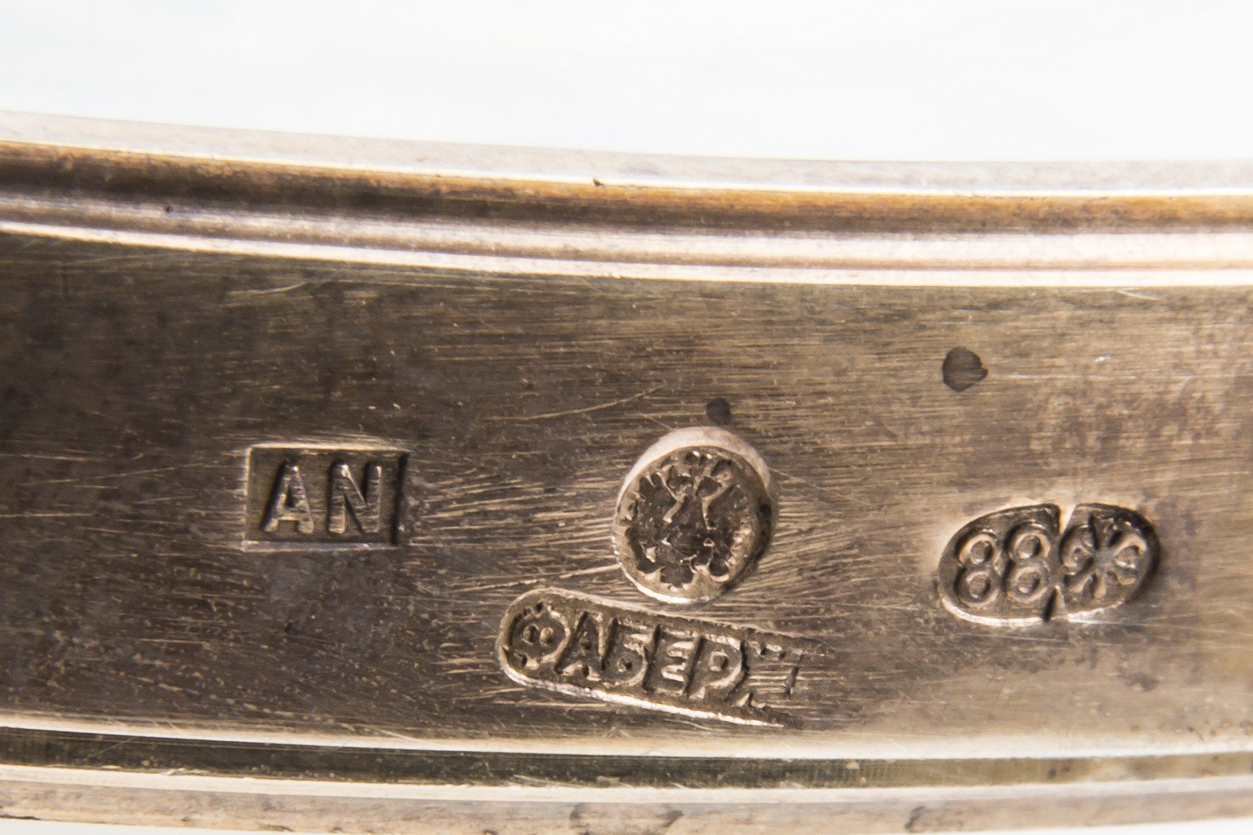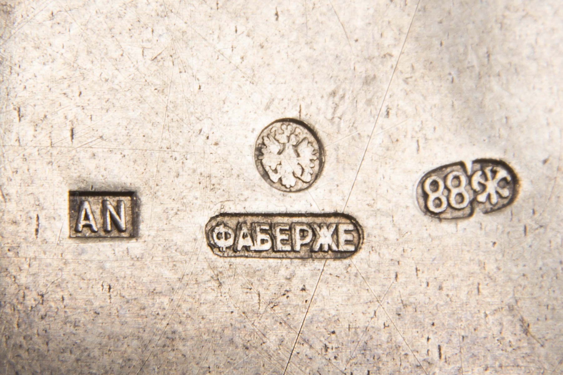 Серебро, гильошированная эмаль, бумага. Монтировка. Клейма: «Фаберже», «Двуглавый орел», «AN», «88».