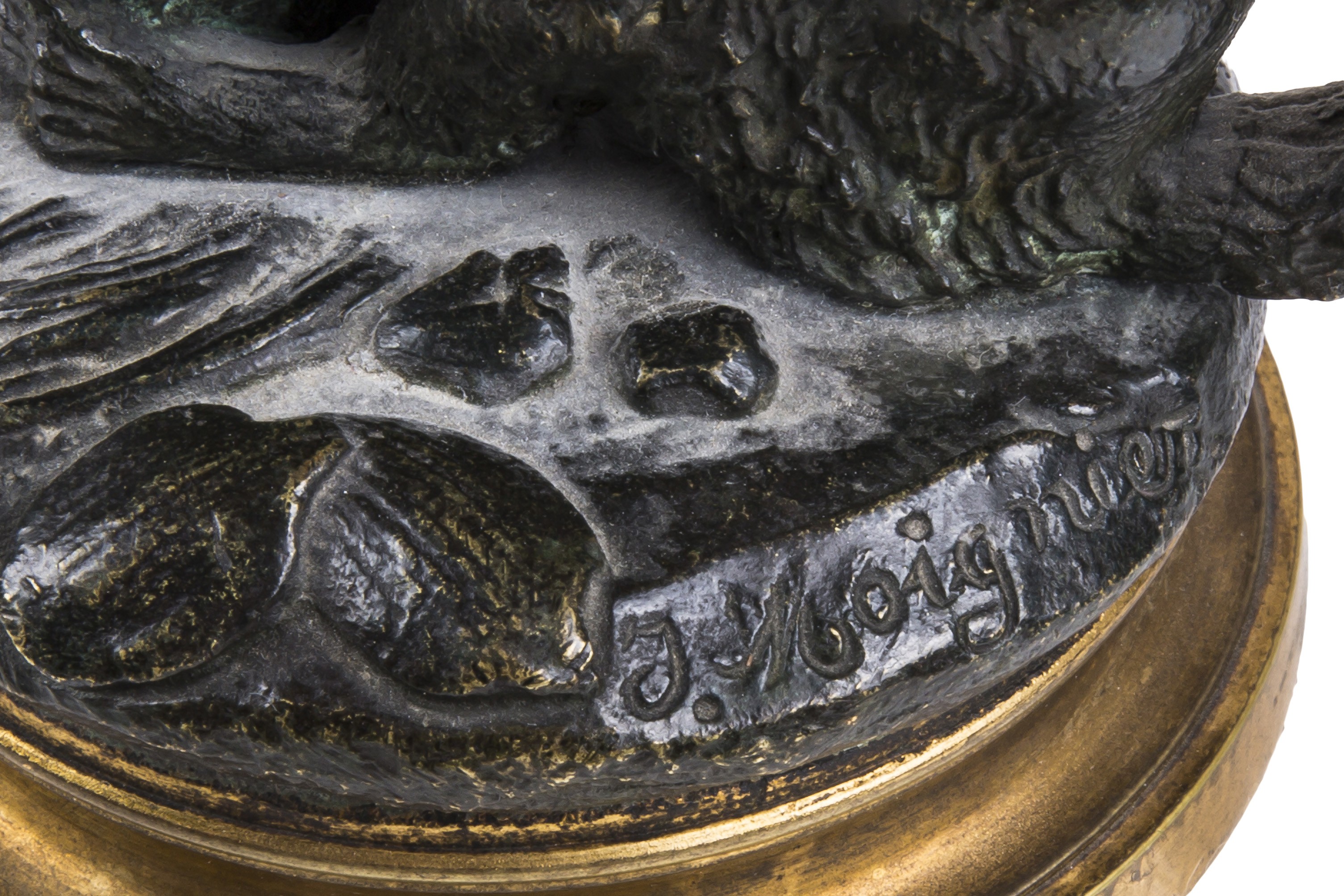 Бронза, литье, чеканка, патинирование. На основании автограф - «J. Moignier».