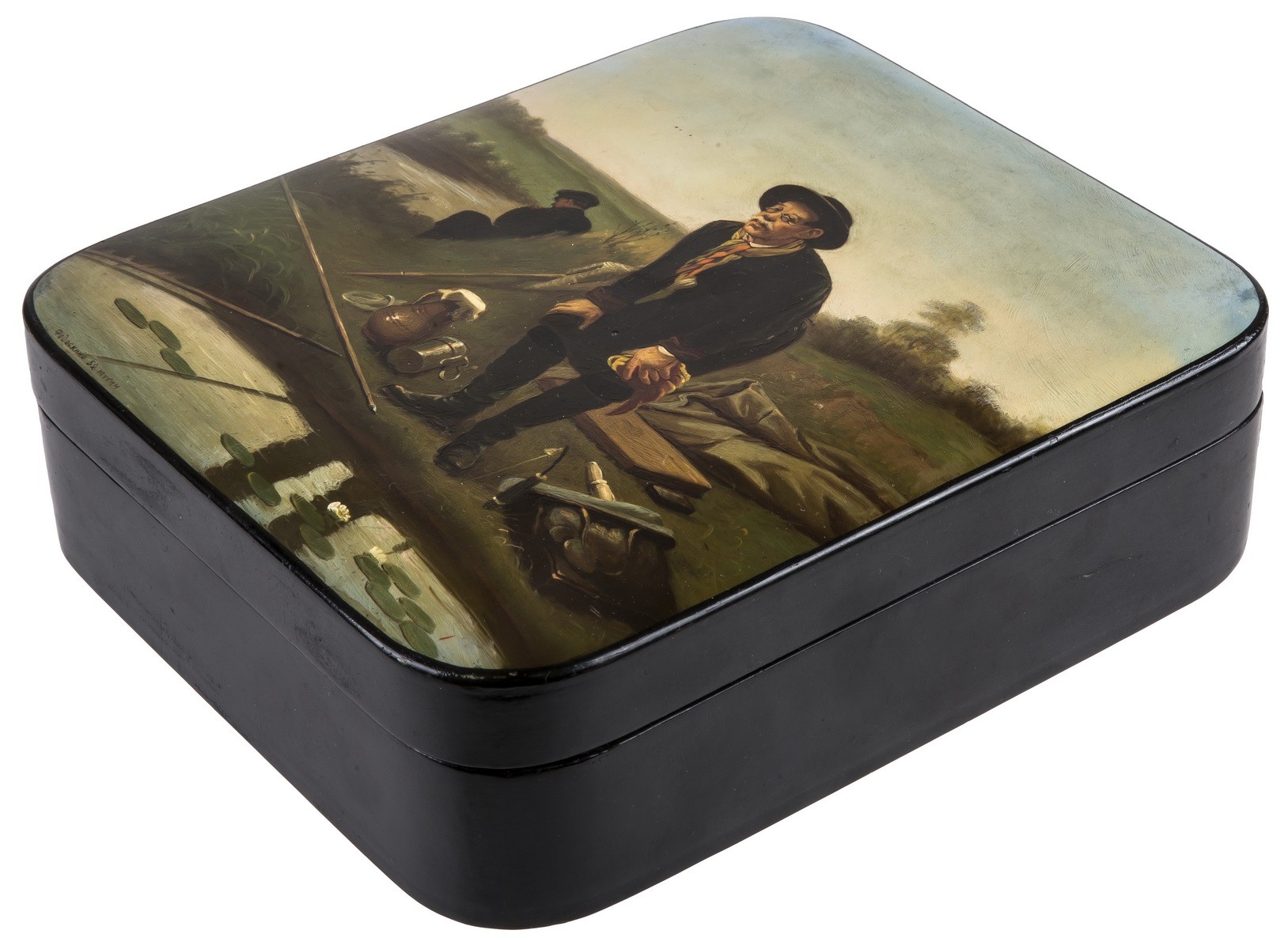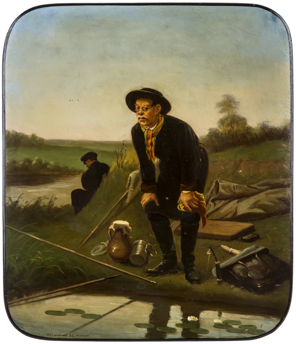 Папье-маше, грунт, масло В левом нижнем углу - авторская подпись «Федоскино 25 Мухин».