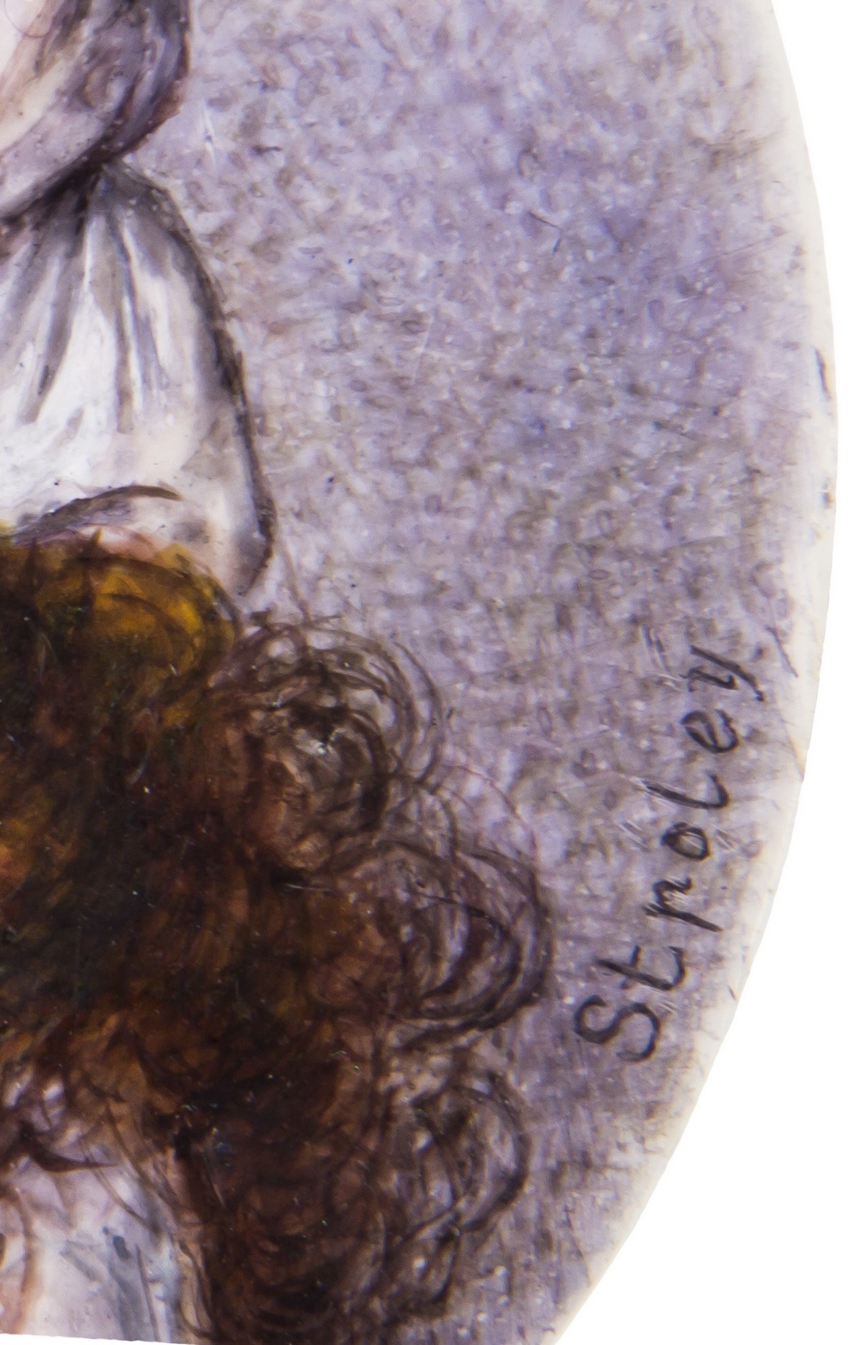 Кость, масло. По канту авторская подпись: «Stroley».