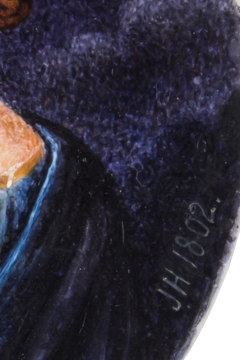 Кость, масло. По портрету И.Г. Шредера. По канту авторская подпись: «JH 1802.».