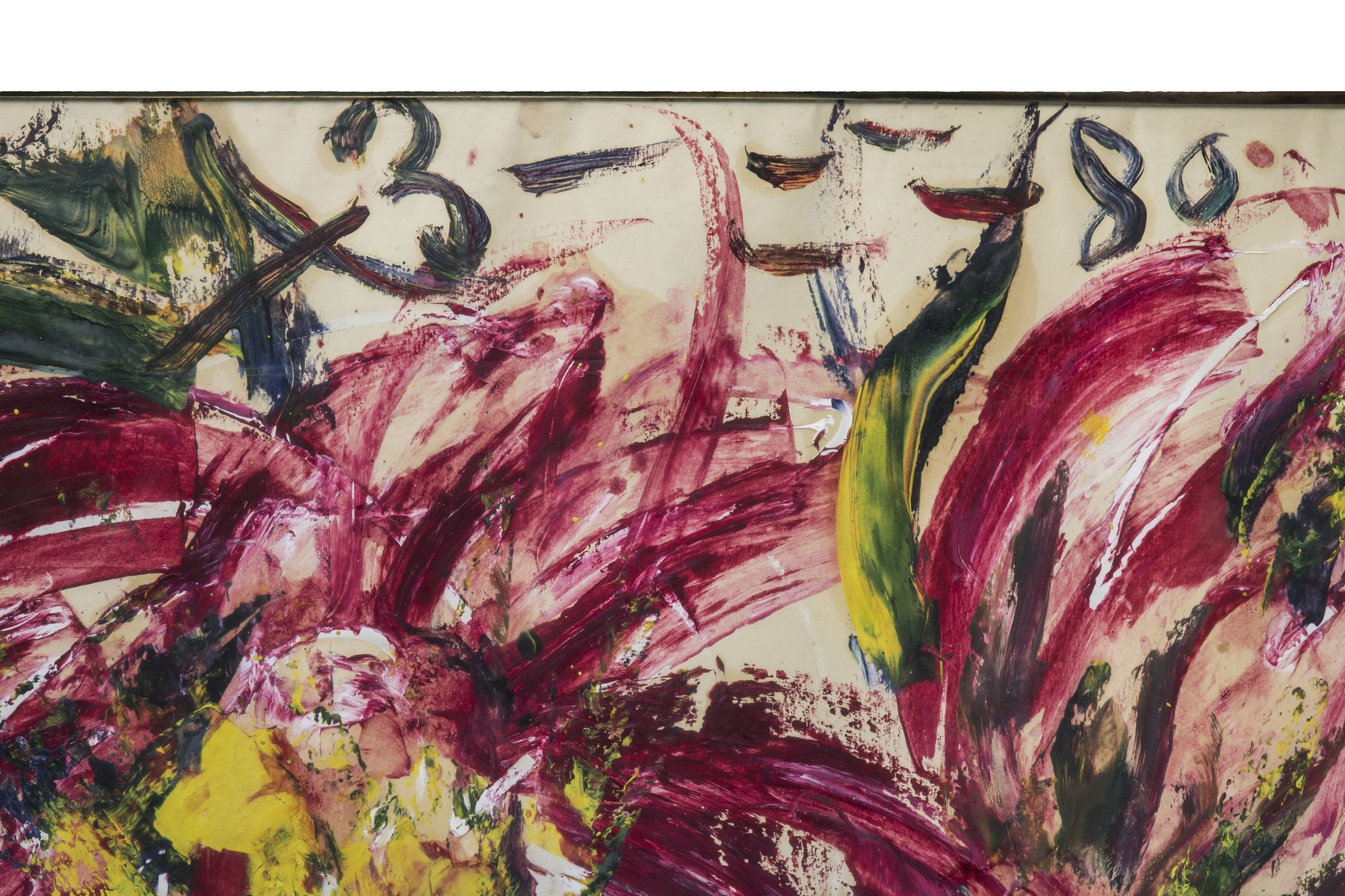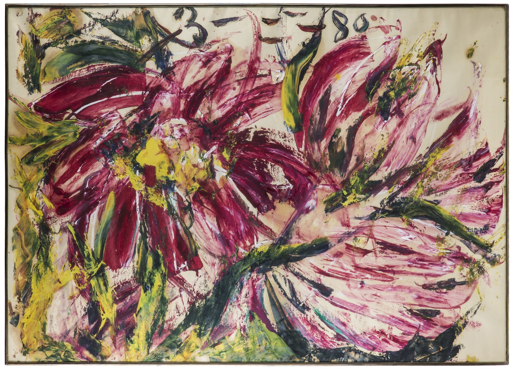 В раме, под стеклом. Авторские инициалы в верхнем углу.