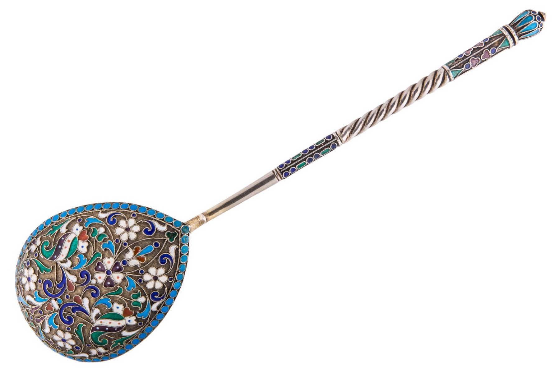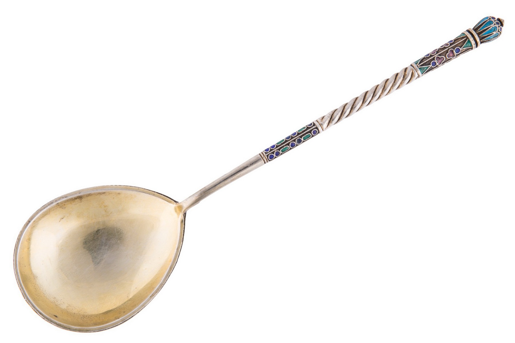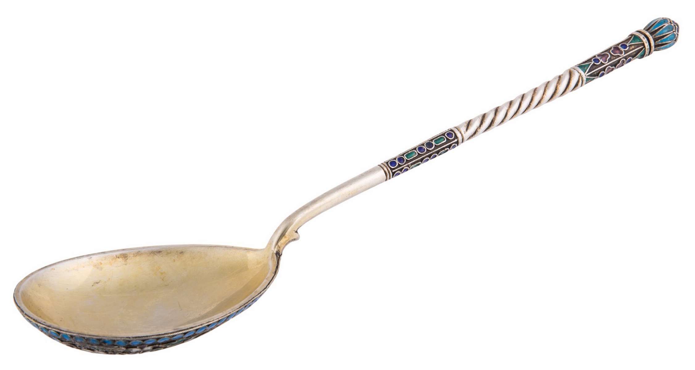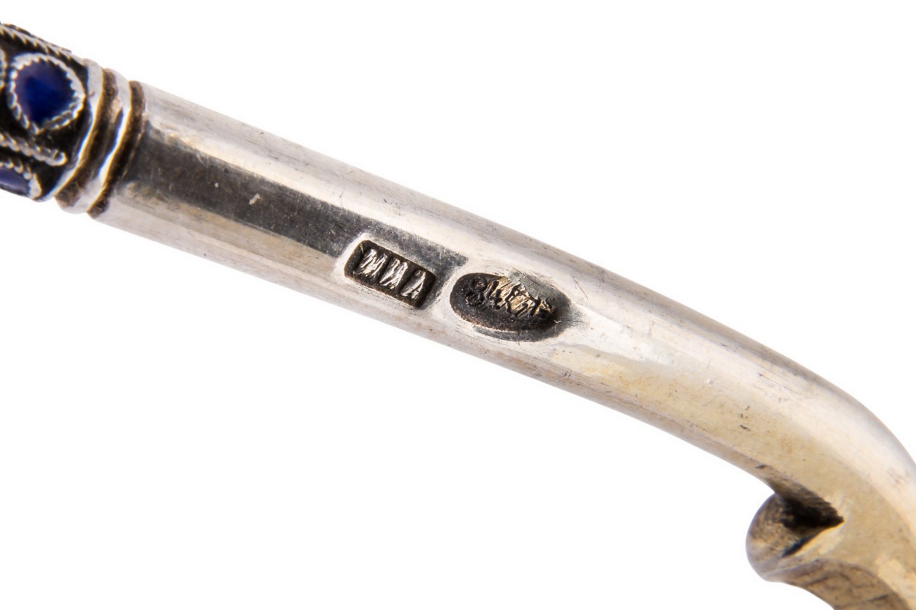 Серебро; полихромная выемчатая эмаль. Клейма: проба «84», «голова в кокошнике влево» инициалы [неразбор].