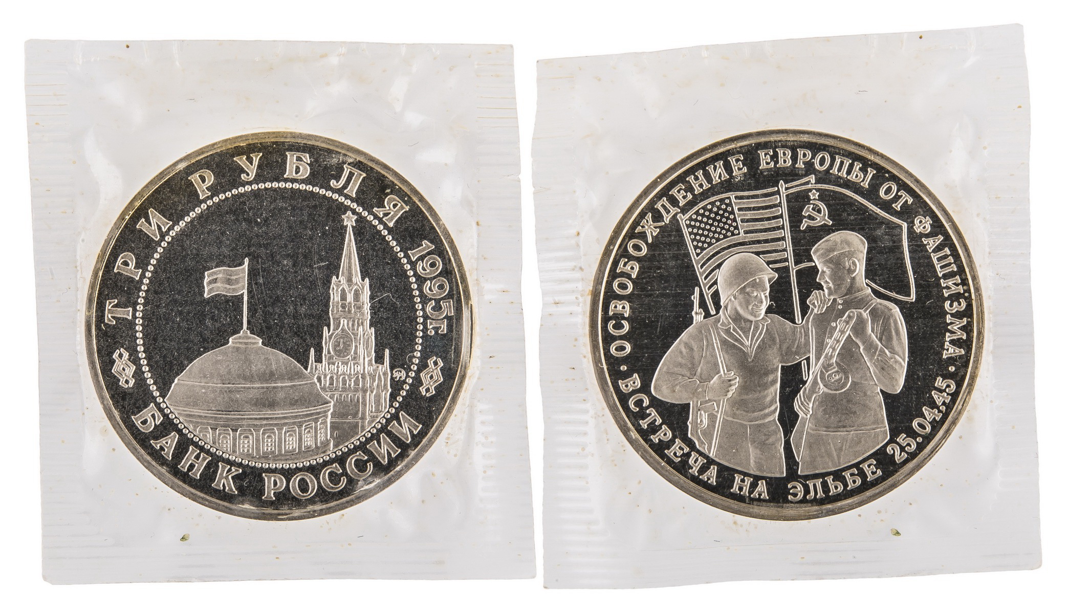 3 Рубля 1995. ММД. "Встреча на Эльбе". Россия.