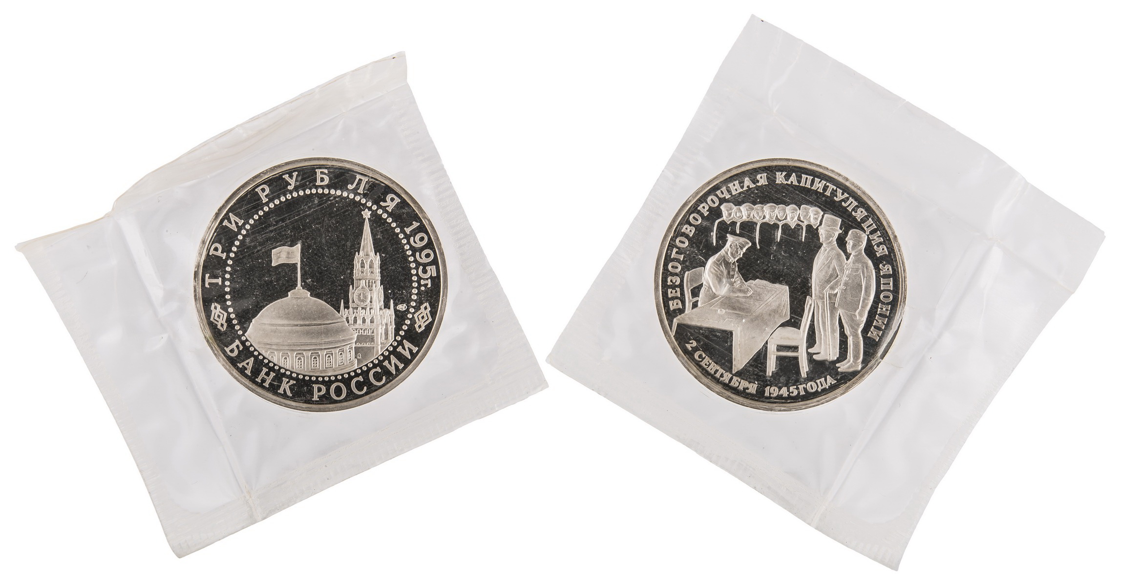 3 Рубля 1995. ЛМД. "Безоговорочная капитуляция Японии". Россия.