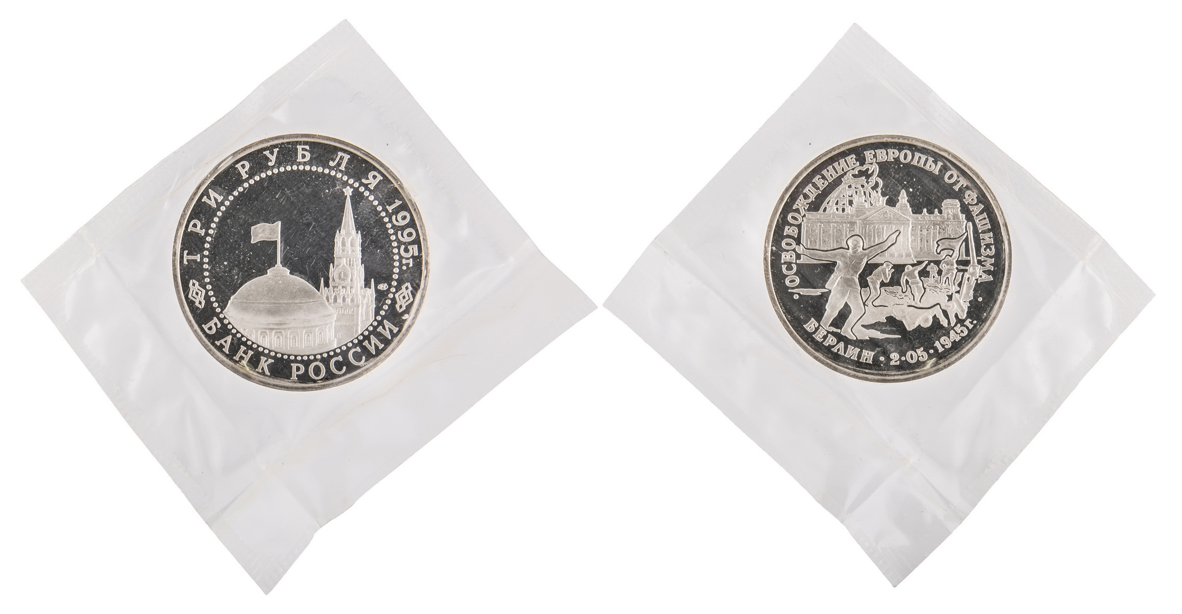 3 Рубля 1995. ЛМД. "Освобождение Европы от фашизма. Берлин". Россия.
