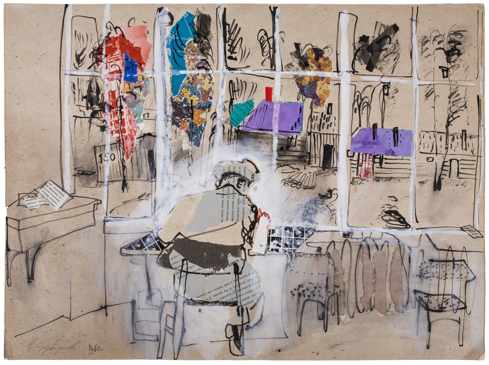 Зубарев, В.К. Пейзаж. - 1960. Бумага, тушь, перо, коллаж. - 42х56 см.