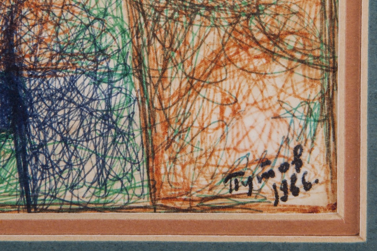 В раме, под стеклом. Авторская подпись в правом нижнем углу.