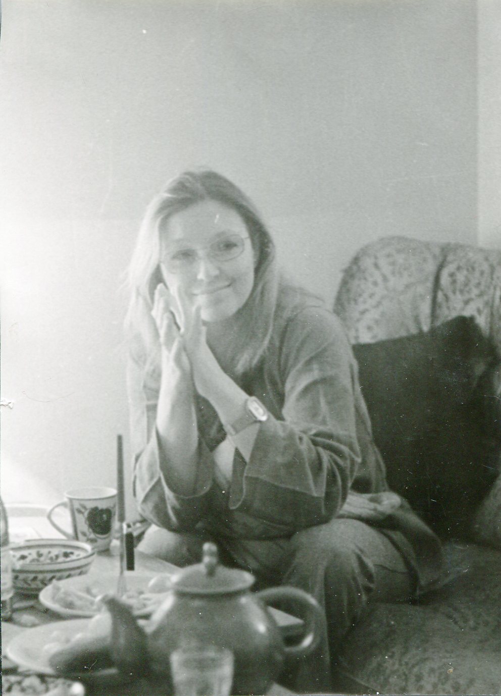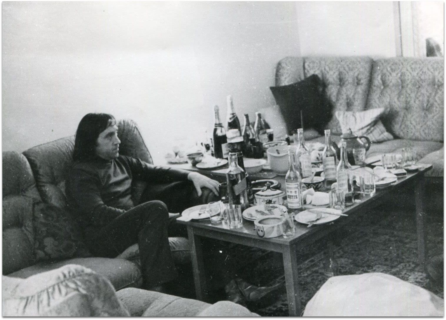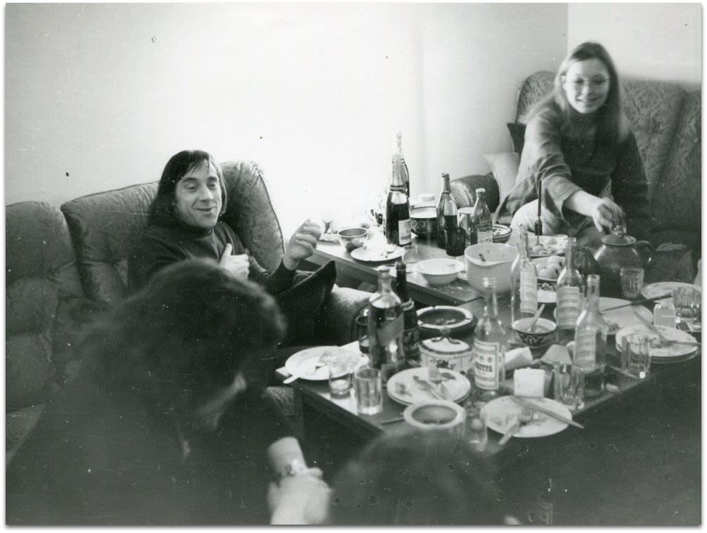 Владимир Высоцкий и Марина Влади. Застолье в квартире Высоцкого. Москва. 1970-е. Пять фотографий. Серебряно-желатиновые отпечатки. - 5 л.; 17х23, 15х16, 15х20, 14х19 см.
