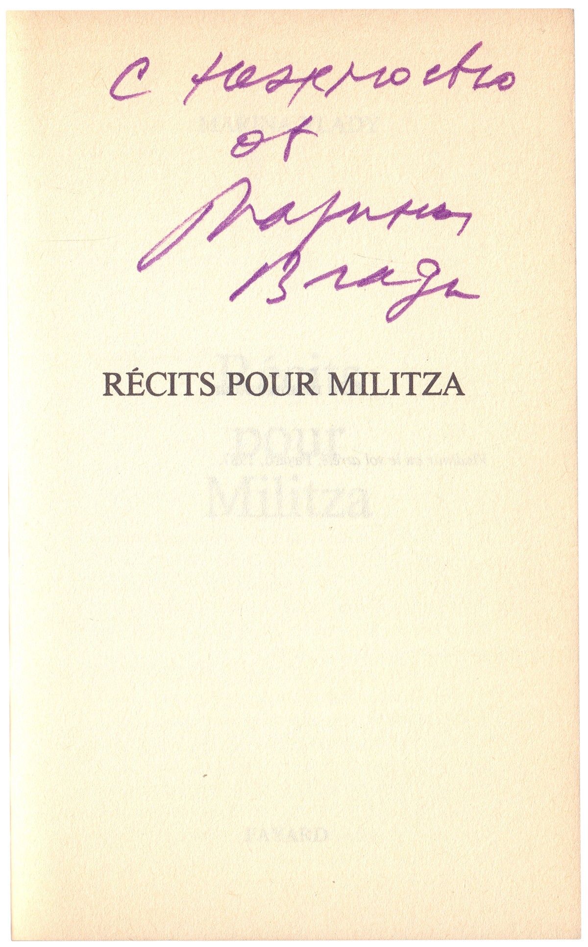В иллюстрированной издательской обложке с портретом Марины Влади. На авантитуле дарственная надпись автора: "С нежностью от Марины Влади". В книгу вложена фотография Марины Влади с Владимиром Высоцким (14х10см) 1970-х гг.