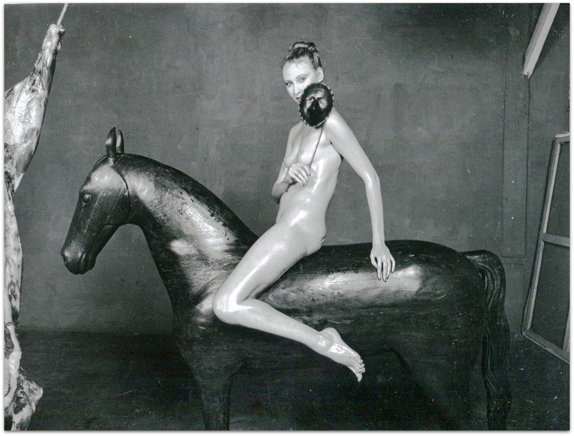 Елена Щапова. Фотосъемка в мастерской Михаила Шемякина. 1980-е. Париж. Фотограф - Патрик Бернар. Авторский серебряно-желатиновый отпечаток. - 1 л.; 18х24 см.