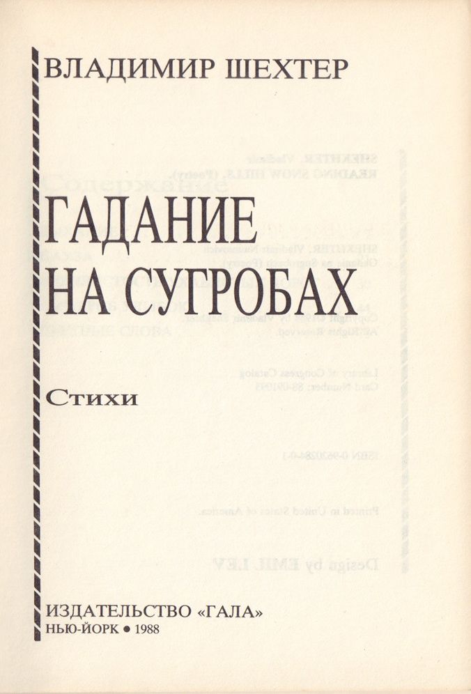 Владимир Наумович Шехтер (1940) — поэт, автор книг для детей и взрослых. Эмигрировал в 1978 году.