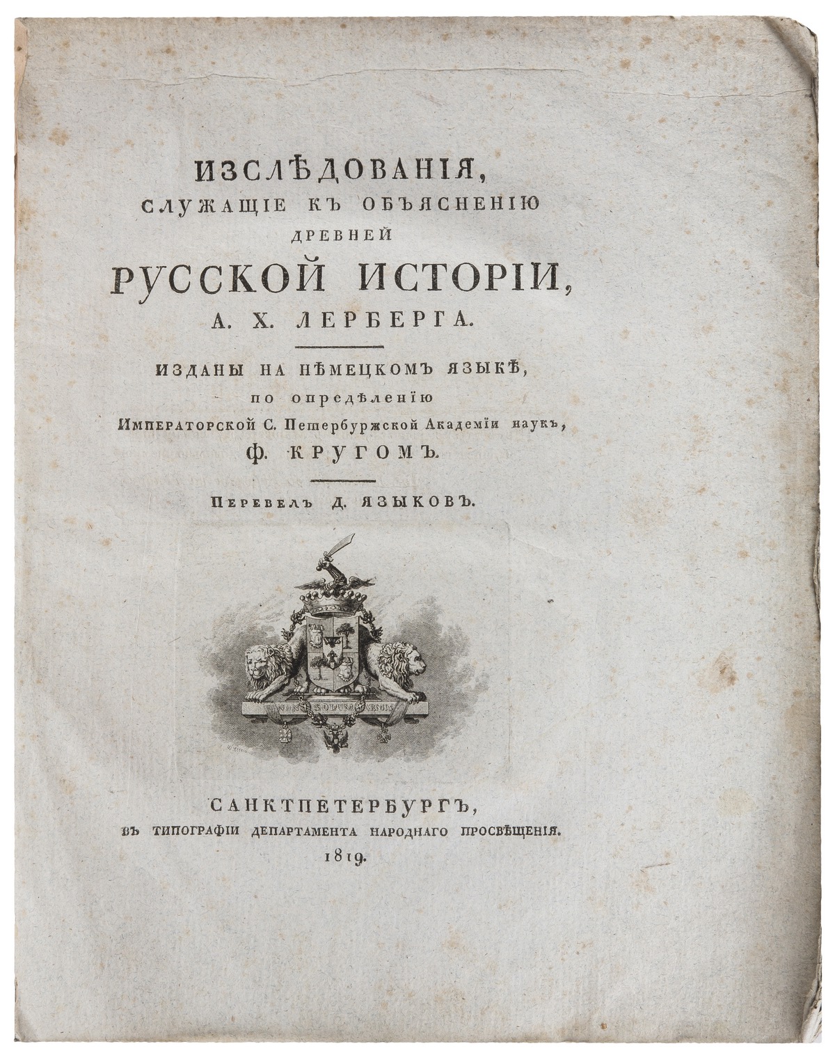 Аарон Христиан Лерберг (1770—1813) — историк родом из Дерпта. В 1807. г. был избран адъюнктом Императорской академии наук, затем экстраординарным академиком. Работая над изучением русской истории, преимущественно древней географии и генеалогии, написал немало статей, но все они стали известны публике только спустя несколько лет после его смерти. Работы Лерберга не переиздавались и быстро стали библиографической редкостью. СК XIX № 4511, Геннади, II, с. 235. Плавильщиков № 2727, Смирдин № 2652.