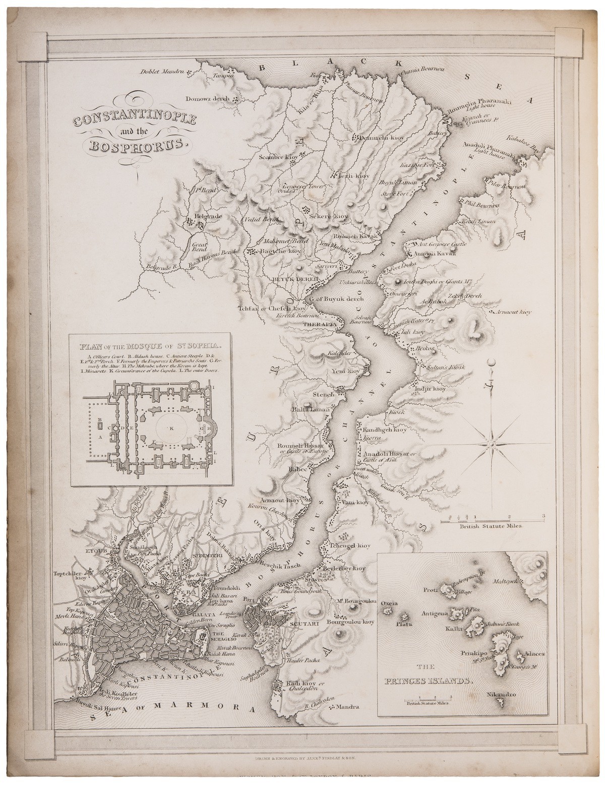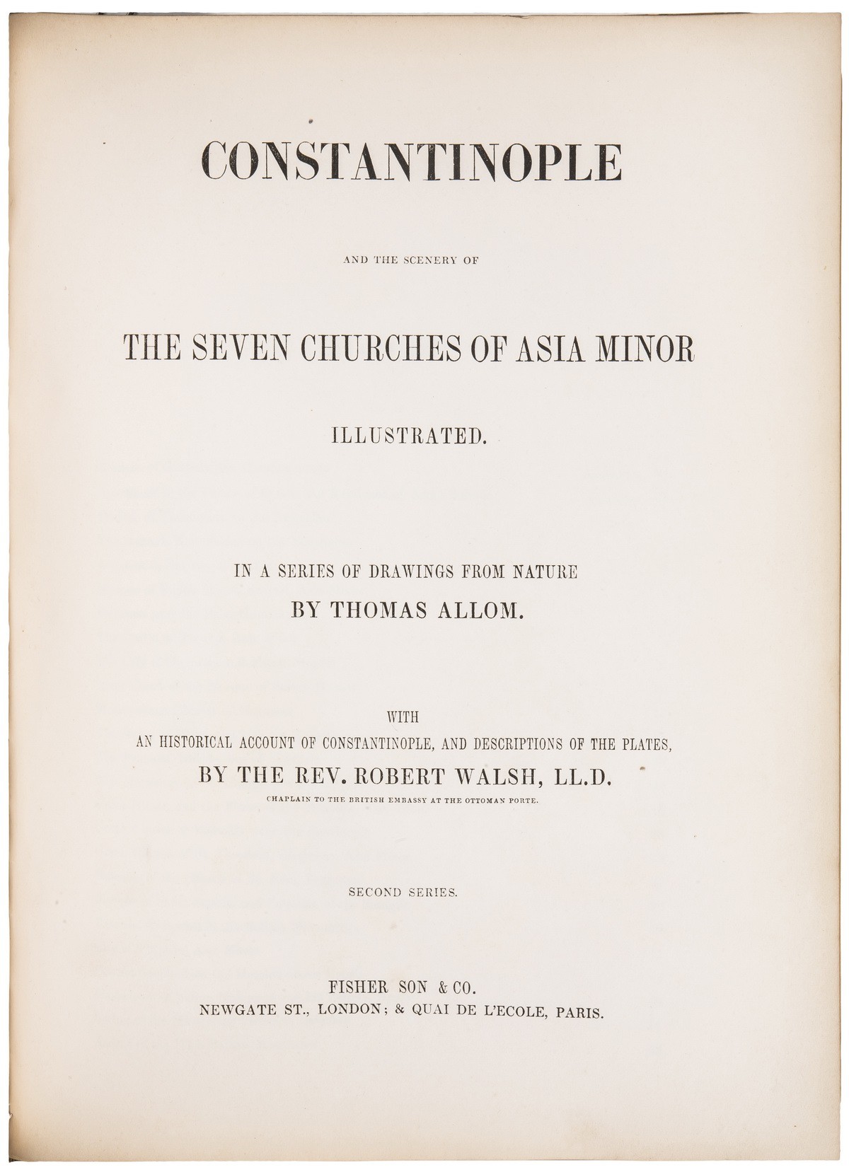 В цельнокожаном переплете эпохи с кожаной этикеткой и золотым тиснением по корешку, т рамками на крышках. Золотая дублюра с пальметтами. Форзацы оклеены бумагой «под мрамор» с узором «французский завиток». Тройной золотой обрез. На англ. яз. Бум. экслибрис на форз. Роскошно иллюстрированное издание. Гравированные титульные листы, более 90 полностраничных иллюстраций.