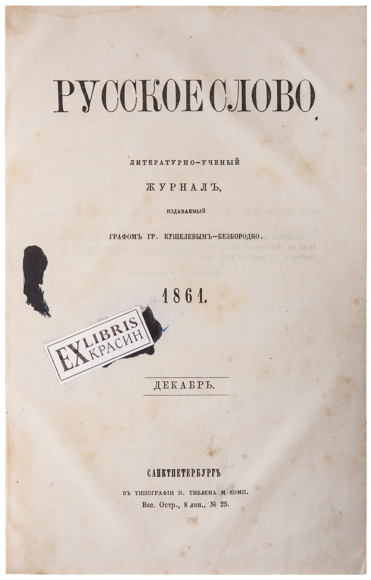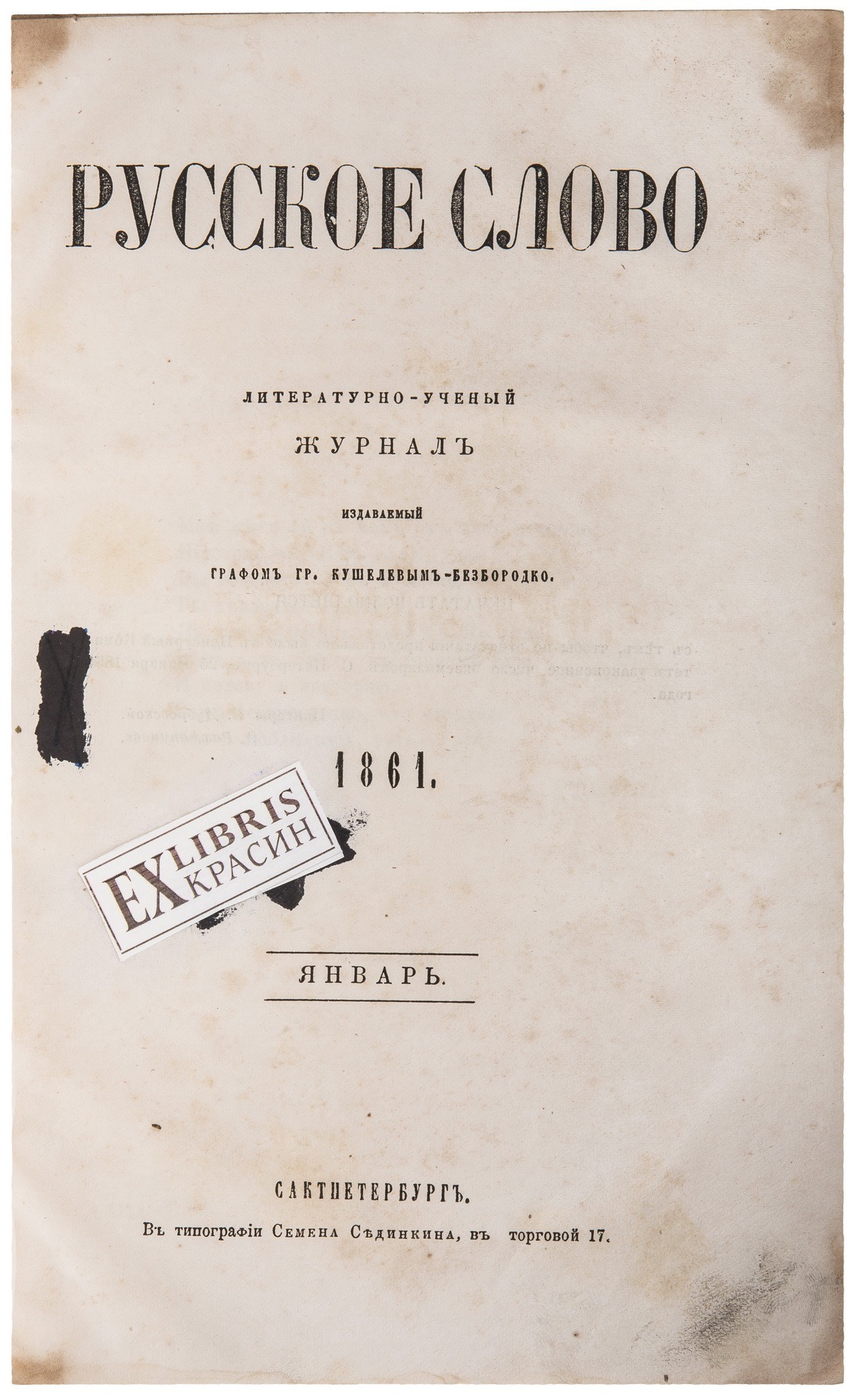 «Русское слово» — петербургский ежемесячный «учёно-литературный» журнал, издававшийся с 1859 по 1866 год графом Г. А. Кушелёвым-Безбородко. Первоначально журнал имел умеренно-либеральное направление. С июля 1860 года, когда редакцию возглавил Г. Е. Благосветлов и в работу активно включился Д. И. Писарев, журнал обрёл радикальную политическую направленность, пропагандируя идеи революционного демократизма. В 1862 году одновременно с «Современником» журнал закрыли на полгода за статью Писарева «Бедная русская мысль». В апреле 1866 года, после покушения Д. В. Каракозова на императора Александра II, журнал был закрыт по высочайшему повелению. Вместо него Благосветлов стал издавать журнал «Дело». Журнал содержал несколько отделов: Первый — произведения художественной прозы, поэзии и научные статьи. Второй — критика и библиография. Третий («Смесь») — фельетон «Общественная жизнь в Петербурге», заметки о зарубежной жизни, а также произведения малых художественных форм (короткие рассказы, пьесы).