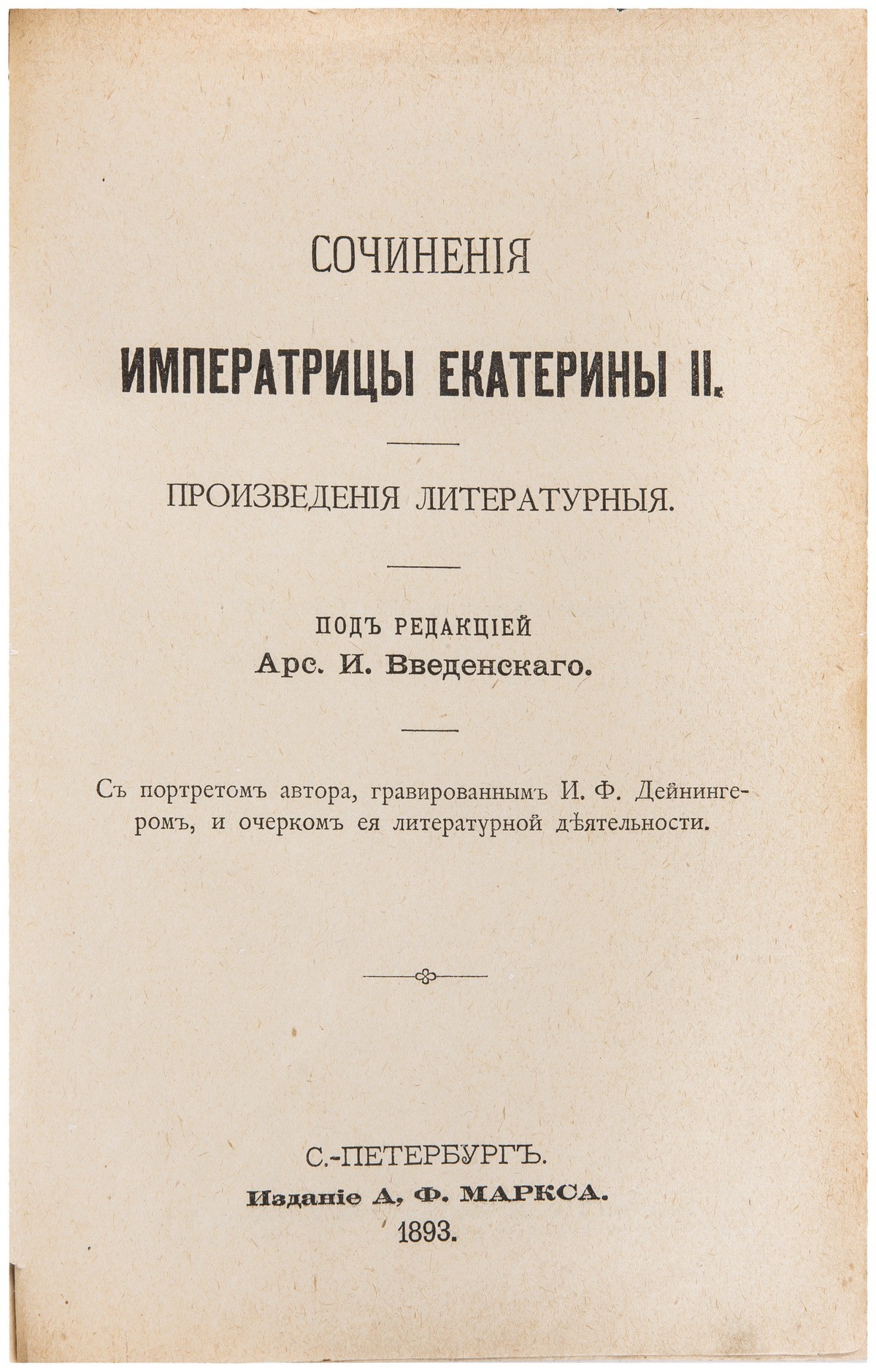 Екатерина II Алексеевна (1729-1796) — императрица Всероссийская с 1762 по 1796 год. Екатерина занималась литературной деятельностью, оставив после себя большое число произведений — записки, переводы, басни, сказки, комедии.